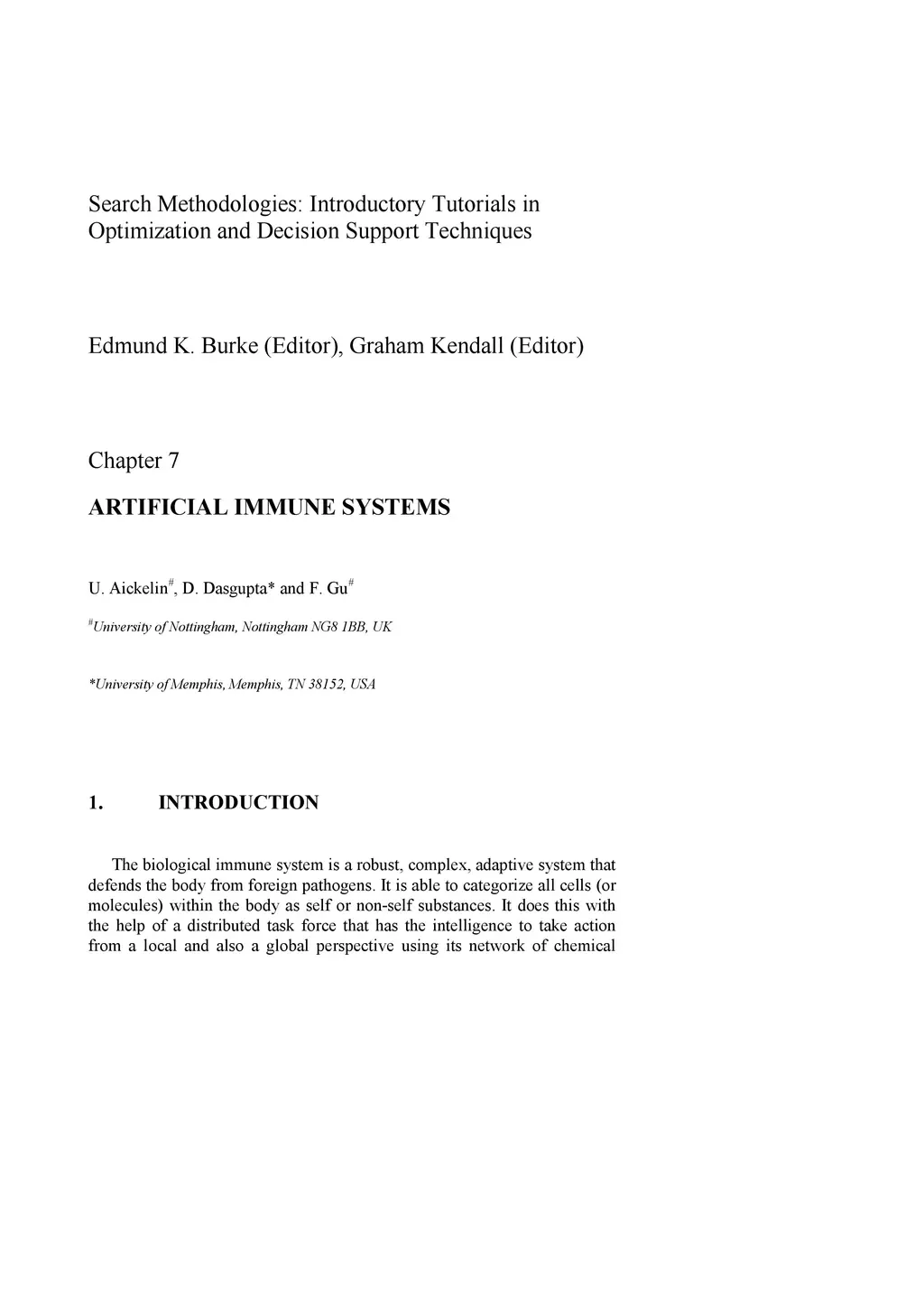 Artificial Immune Systems (INTROS 2)