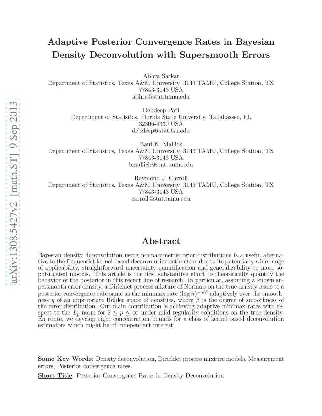 Bayesian density deconvolution using nonparametric prior distributions is a useful alternative to the frequentist kernel based deconvolution estimators due to its potentially wide range of applicability, straightforward uncertainty quantification and generalizability to more sophisticated models. This article is the first substantive effort to theoretically quantify the behavior of the posterior in this recent line of research. In particular, assuming a known supersmooth error density, a Dirichlet process mixture of Normals on the true density leads to a posterior convergence rate same as the minimax rate adaptively over the smoothness of an appropriate H\"{o}lder space of densities, where is the degree of smoothness of the error distribution. Our main contribution is achieving adaptive minimax rates with respect to the norm for under mild regularity conditions on the true density. En route, we develop tight concentration bounds for a class of kernel based deconvolution estimators which might be of independent interest.