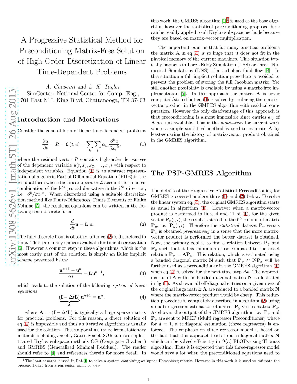 Preconditioning of a linear system obtained from spectral discretization of time-dependent PDEs often results in a full matrix which is expensive to compute and store specially when the problem size increases. A matrix-free implementation is usually applied to resolve this issue. In this framework, preconditioning is typically challenging since the entries of the matrix are not explicitly available. In this short note, we propose a statistical approach to gradually create a preconditioner matrix by collecting the information obtained from matrix-vector product in the Arnoldi loop of an unpreconditioned Krylov subspace algorithm. The gathered information are then correlated using a multiple regressors estimate where the error is assumed to be normally distributed. This procedure yields a banded diagonal matrix which is then used as a preconditioner in the next iterative solve. This is repeated between iterative solves until a good preconditioner is constructed on fly. This statistically iterative procedure is progressive since the fidelity of the preconditioning matrix improves by adding more data obtained from matrix-vector product during the entire solution procedure. The proposed algorithm is validated for a sample implementation.