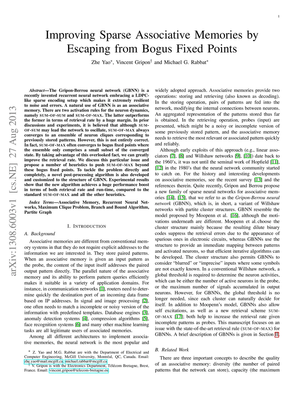 The Gripon-Berrou neural network (GBNN) is a recently invented recurrent neural network embracing a LDPC-like sparse encoding setup which makes it extremely resilient to noise and errors. A natural use of GBNN is as an associative memory. There are two activation rules for the neuron dynamics, namely sum-of-sum and sum-of-max. The latter outperforms the former in terms of retrieval rate by a huge margin. In prior discussions and experiments, it is believed that although sum-of-sum may lead the network to oscillate, sum-of-max always converges to an ensemble of neuron cliques corresponding to previously stored patterns. However, this is not entirely correct. In fact, sum-of-max often converges to bogus fixed points where the ensemble only comprises a small subset of the converged state. By taking advantage of this overlooked fact, we can greatly improve the retrieval rate. We discuss this particular issue and propose a number of heuristics to push sum-of-max beyond these bogus fixed points. To tackle the problem directly and completely, a novel post-processing algorithm is also developed and customized to the structure of GBNN. Experimental results show that the new algorithm achieves a huge performance boost in terms of both retrieval rate and run-time, compared to the standard sum-of-max and all the other heuristics.