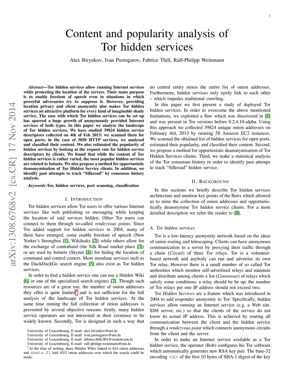 Content and popularity analysis of Tor hidden services