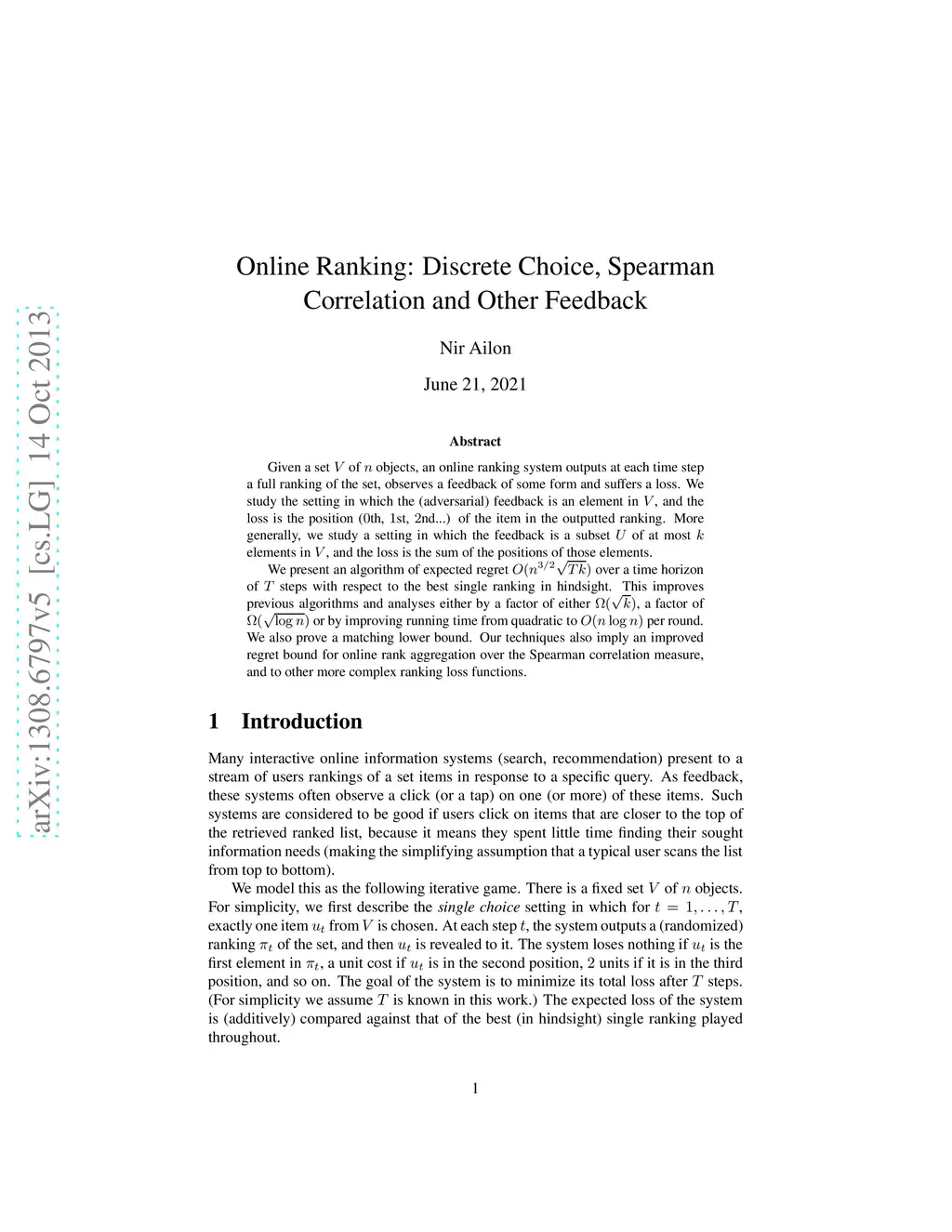 Online Ranking: Discrete Choice, Spearman Correlation and Other Feedback