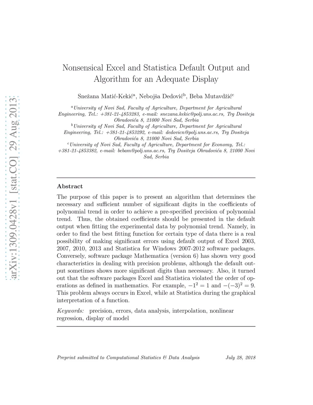 The purpose of this paper is to present an algorithm that determines the necessary and sufficient number of significant digits in the coefficients of a polynomial trend to achieve a pre-specified precision for the polynomial trend. Thus, the obtained coefficients should be presented in the default output when fitting the experimental data with the polynomial trend. Namely, when finding the best fitting function for a certain type of data, there is a real possibility of making significant errors when using the default output of the Excel 2003, 2007, 2010, and 2013 and Statistica for Windows 2007-2012 software packages. Conversely, the software package Mathematica (version 6) has been very good at dealing with precision problems, although the default output sometimes shows more significant digits than necessary.