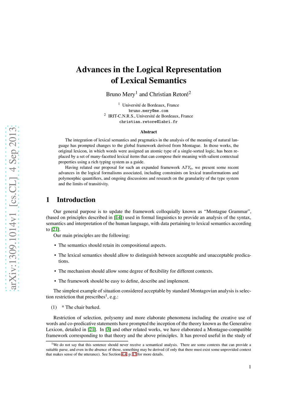 Advances in the Logical Representation of Lexical Semantics