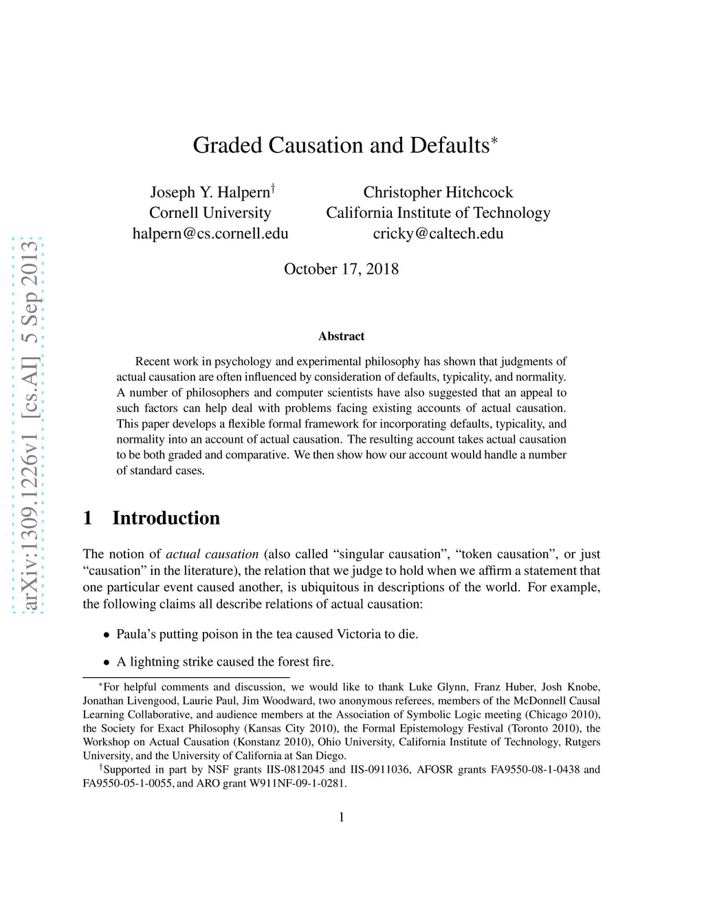 Graded Causation and Defaults