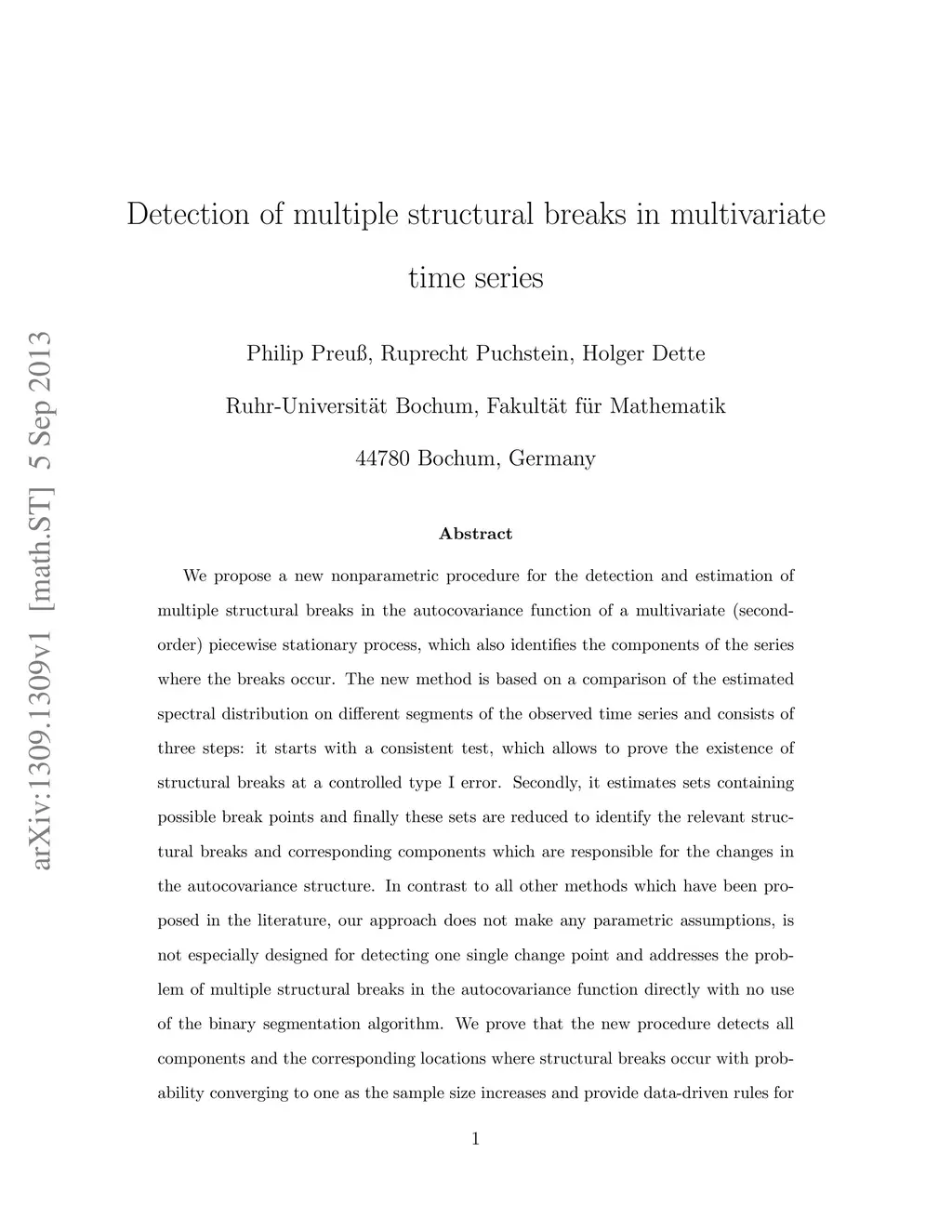 We propose a new nonparametric procedure for the detection and estimation of multiple structural breaks in the autocovariance function of a multivariate (second- order) piecewise stationary process, which also identifies the components of the series where the breaks occur. The new method is based on a comparison of the estimated spectral distribution on different segments of the observed time series and consists of three steps: it starts with a consistent test, which allows to prove the existence of structural breaks at a controlled type I error. Secondly, it estimates sets containing possible break points and finally these sets are reduced to identify the relevant structural breaks and corresponding components which are responsible for the changes in the autocovariance structure. In contrast to all other methods which have been proposed in the literature, our approach does not make any parametric assumptions, is not especially designed for detecting one single change point and addresses the problem of multiple structural breaks in the autocovariance function directly with no use of the binary segmentation algorithm. We prove that the new procedure detects all components and the corresponding locations where structural breaks occur with probability converging to one as the sample size increases and provide data-driven rules for the selection of all regularization parameters. The results are illustrated by analyzing financial returns, and in a simulation study it is demonstrated that the new procedure outperforms the currently available nonparametric methods for detecting breaks in the dependency structure of multivariate time series.