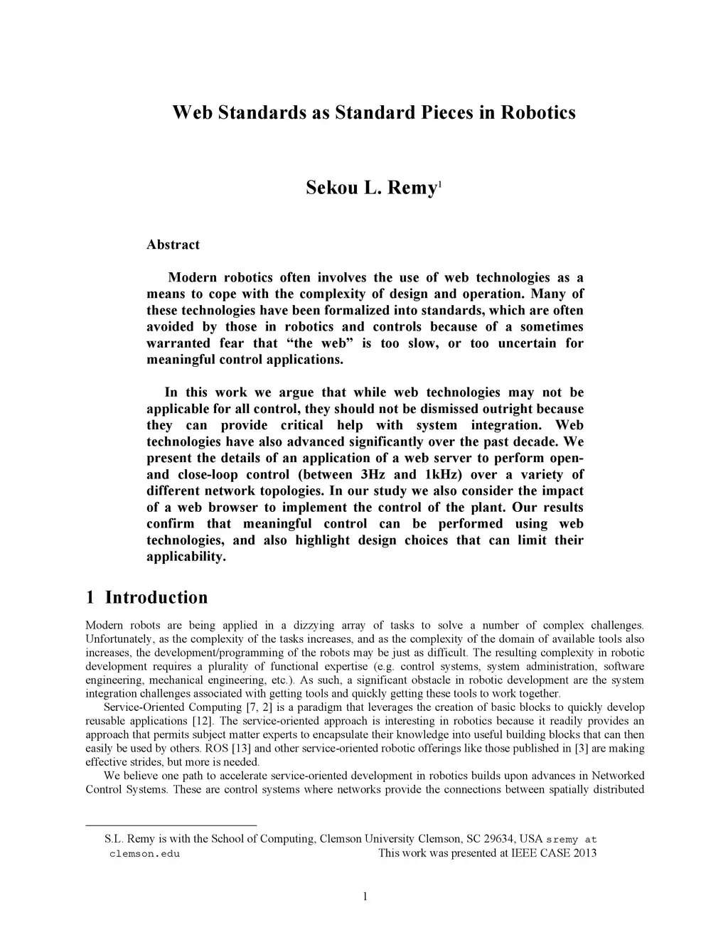 Web Standards as Standard Pieces in Robotics