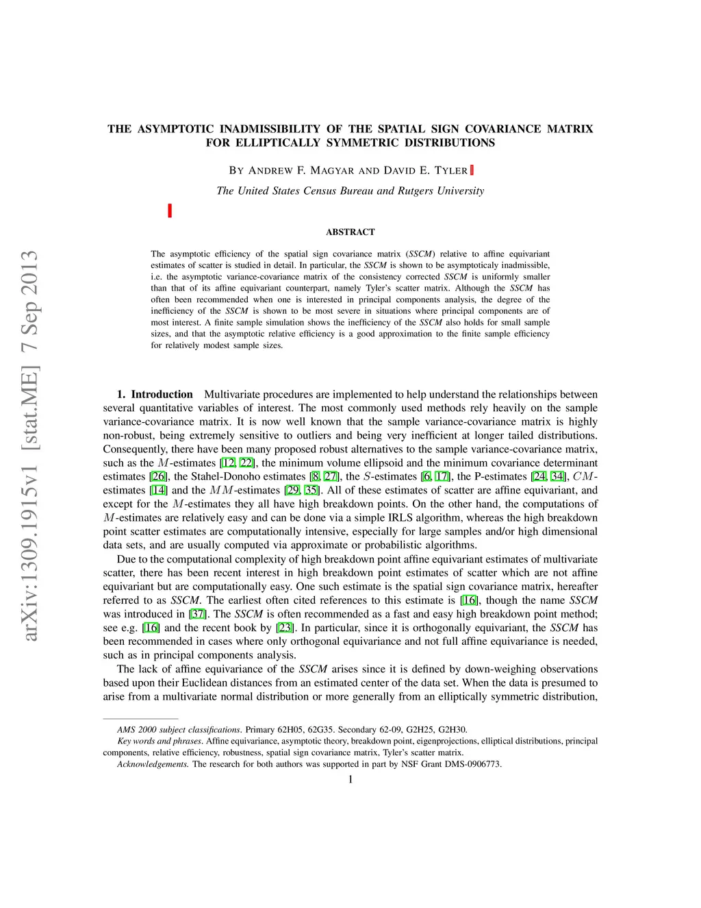 The asymptotic efficiency of the spatial sign covariance matrix (SSCM) relative to affine equivariant estimates of scatter is studied in detail. In particular, the SSCM is shown to be asymptoticaly inadmissible, i.e. the asymptotic variance-covariance matrix of the consistency corrected SSCM is uniformly smaller than that of its affine equivariant counterpart, namely Tyler's scatter matrix. Although the SSCM has often been recommended when one is interested in principal components analysis, the degree of the inefficiency of the SSCM is shown to be most severe in situations where principal components are of most interest. A finite sample simulation shows the inefficiency of the SSCM also holds for small sample sizes, and that the asymptotic relative efficiency is a good approximation to the finite sample efficiency for relatively modest sample sizes.