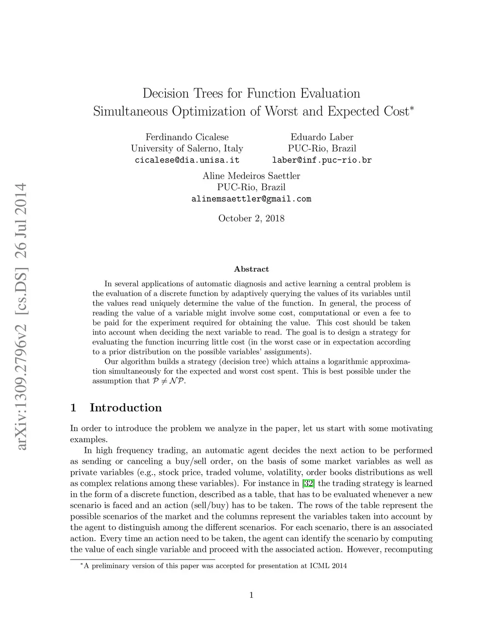 Decision Trees for Function Evaluation - Simultaneous Optimization of