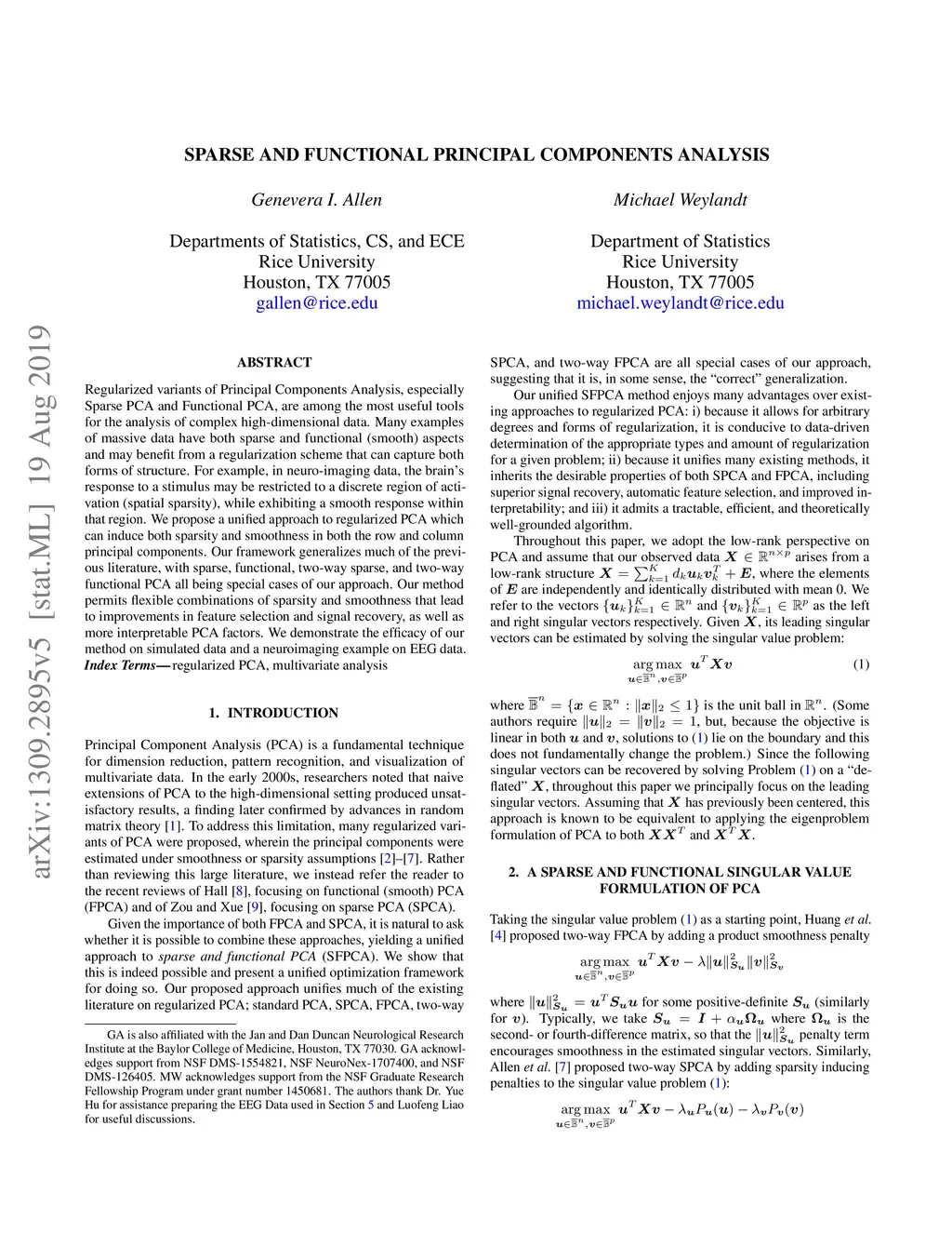 Sparse and Functional Principal Components Analysis