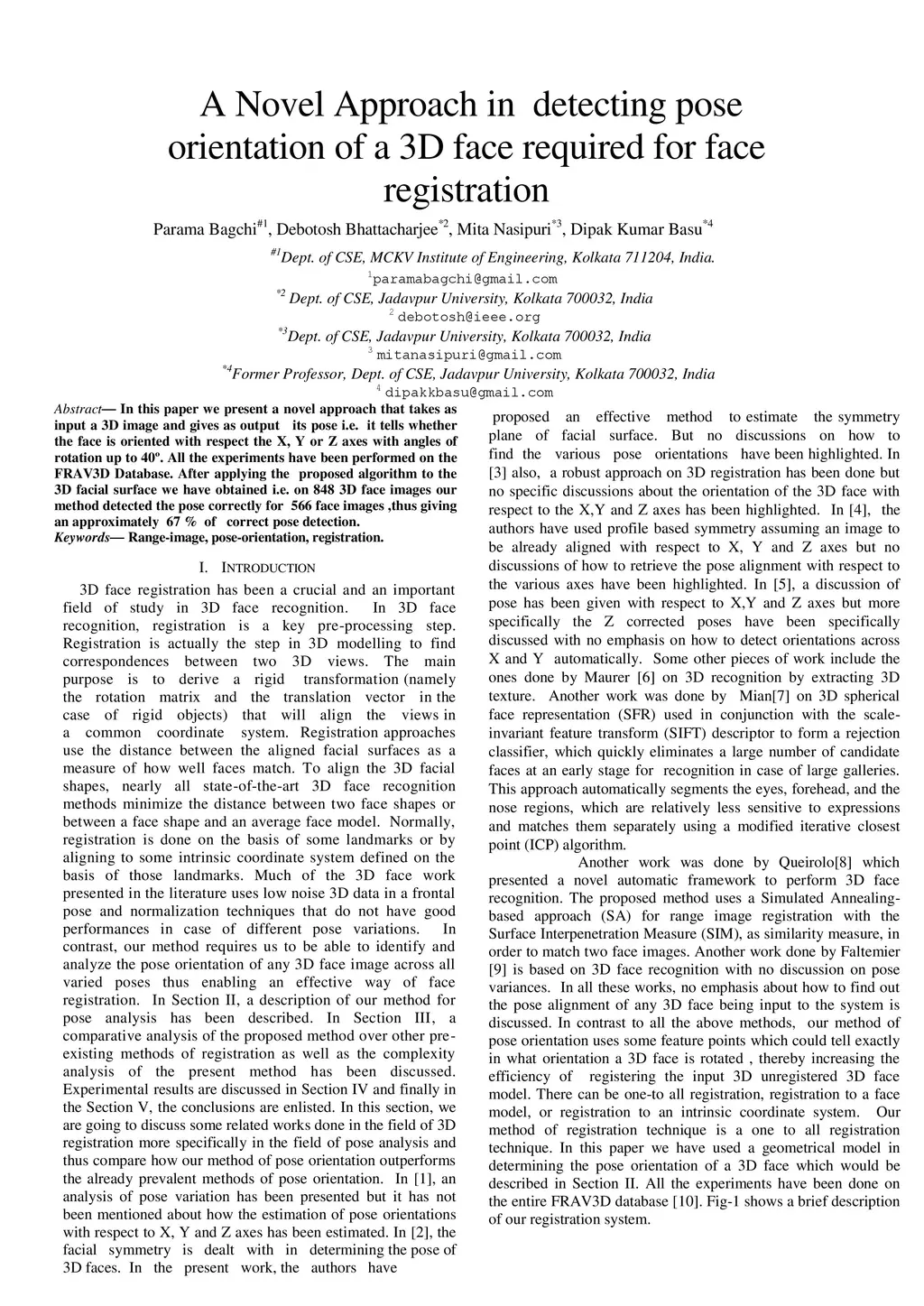 A Novel Approach in detecting pose orientation of a 3D face required for