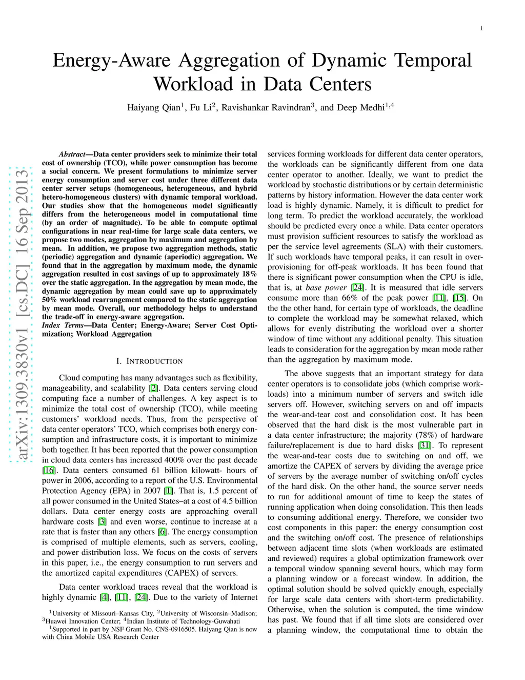 Energy-Aware Aggregation of Dynamic Temporal Workload in Data Centers