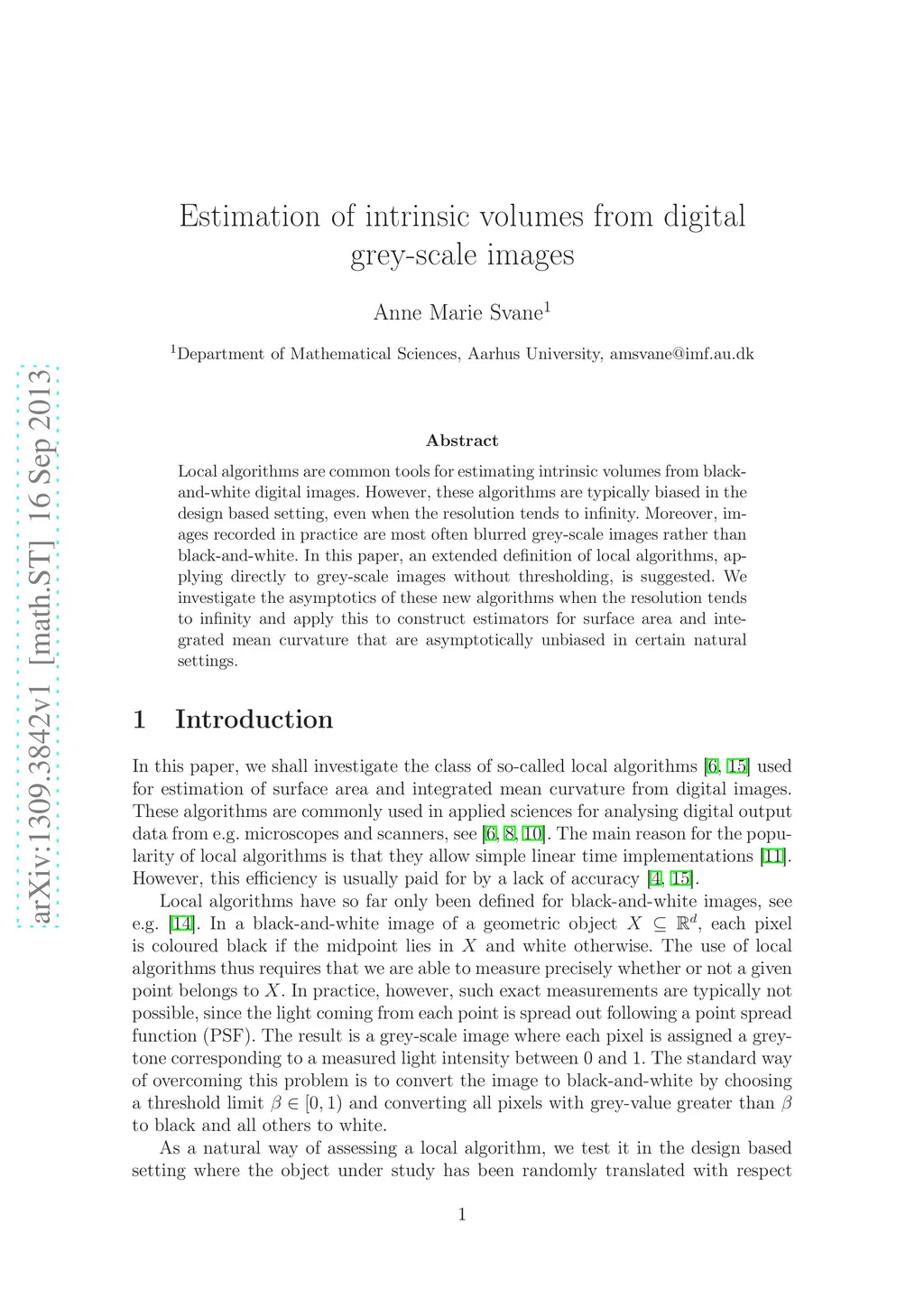 Local algorithms are common tools for estimating intrinsic volumes from black-and-white digital images. However, these algorithms are typically biased in the design based setting, even when the resolution tends to infinity. Moreover, images recorded in practice are most often blurred grey-scale images rather than black-and-white. In this paper, an extended definition of local algorithms, applying directly to grey-scale images without thresholding, is suggested. We investigate the asymptotics of these new algorithms when the resolution tends to infinity and apply this to construct estimators for surface area and integrated mean curvature that are asymptotically unbiased in certain natural settings.