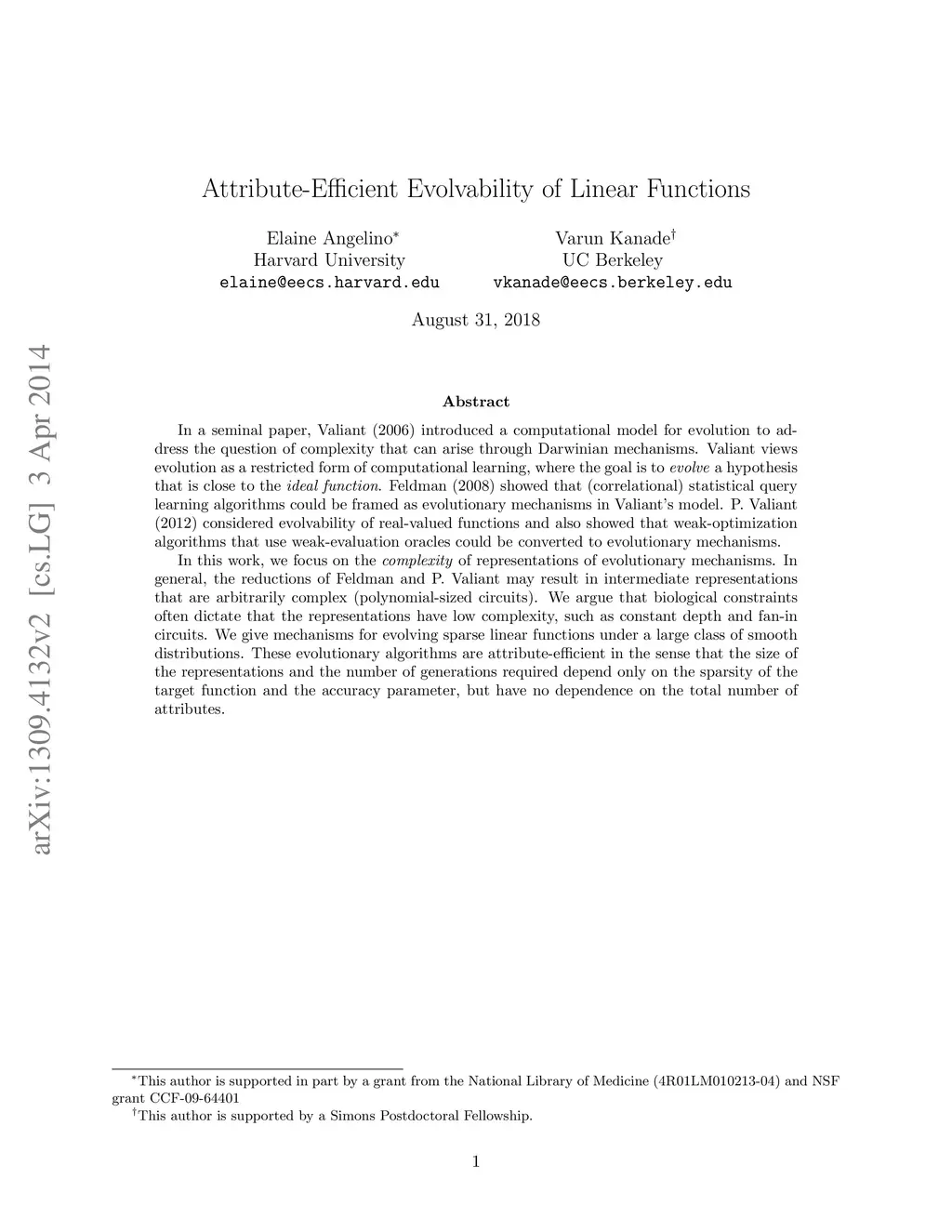 In a seminal paper, Valiant (2006) introduced a computational model for evolution to address the question of complexity that can arise through Darwinian mechanisms. Valiant views evolution as a restricted form of computational learning, where the goal is to evolve a hypothesis that is close to the ideal function. Feldman (2008) showed that (correlational) statistical query learning algorithms could be framed as evolutionary mechanisms in Valiant's model. P. Valiant (2012) considered evolvability of real-valued functions and also showed that weak-optimization algorithms that use weak-evaluation oracles could be converted to evolutionary mechanisms. In this work, we focus on the complexity of representations of evolutionary mechanisms. In general, the reductions of Feldman and P. Valiant may result in intermediate representations that are arbitrarily complex (polynomial-sized circuits). We argue that biological constraints often dictate that the representations have low complexity, such as constant depth and fan-in circuits. We give mechanisms for evolving sparse linear functions under a large class of smooth distributions. These evolutionary algorithms are attribute-efficient in the sense that the size of the representations and the number of generations required depend only on the sparsity of the target function and the accuracy parameter, but have no dependence on the total number of attributes.
