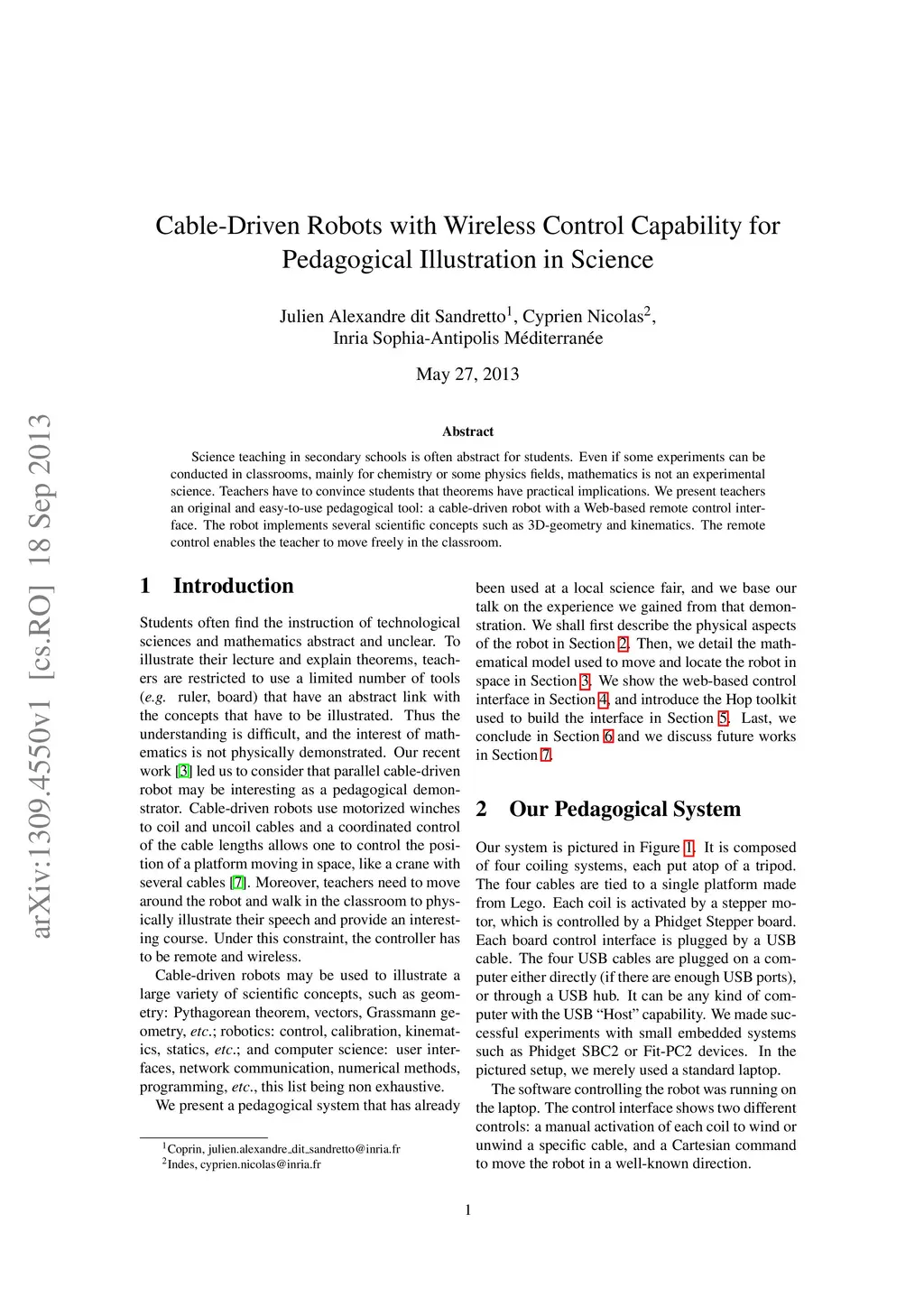 Cable-Driven Robots with Wireless Control Capability for Pedagogical