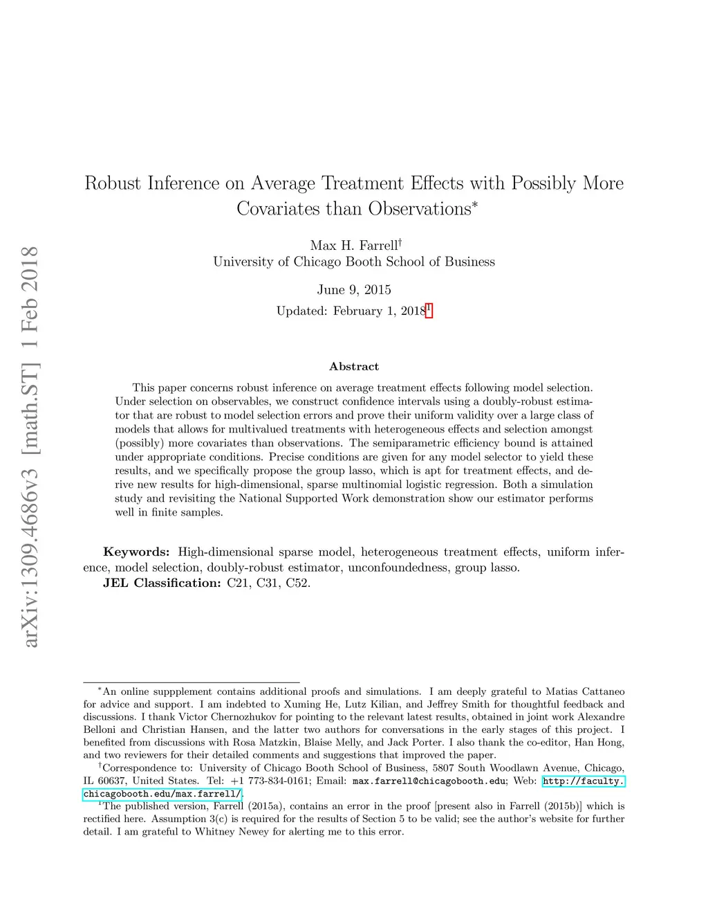 This paper concerns robust inference on average treatment effects following model selection. In the selection on observables framework, we show how to construct confidence intervals based on a doubly-robust estimator that are robust to model selection errors and prove that they are valid uniformly over a large class of treatment effect models. The class allows for multivalued treatments with heterogeneous effects (in observables), general heteroskedasticity, and selection amongst (possibly) more covariates than observations. Our estimator attains the semiparametric efficiency bound under appropriate conditions. Precise conditions are given for any model selector to yield these results, and we show how to combine data-driven selection with economic theory. For implementation, we give a specific proposal for selection based on the group lasso, which is particularly well-suited to treatment effects data, and derive new results for high-dimensional, sparse multinomial logistic regression. A simulation study shows our estimator performs very well in finite samples over a wide range of models. Revisiting the National Supported Work demonstration data, our method yields accurate estimates and tight confidence intervals.