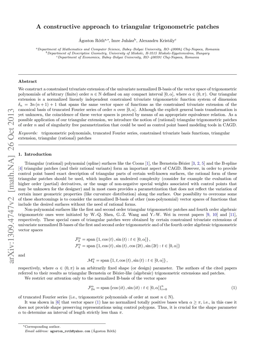 A constructive approach to triangular trigonometric patches