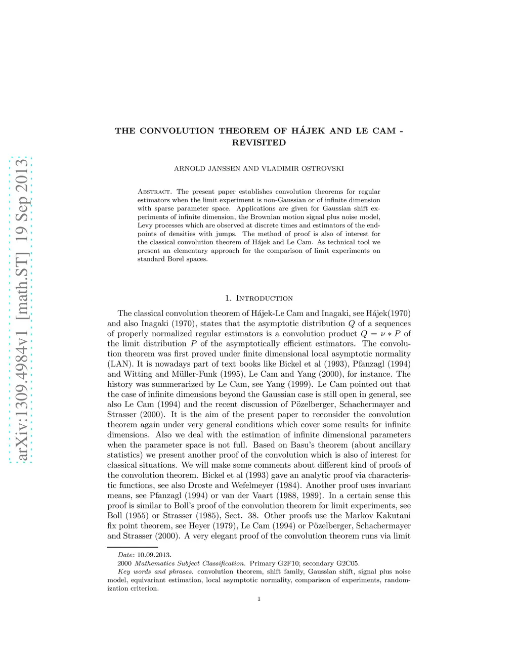 The Convolution Theorem of Hajek and Le Cam - Revisited