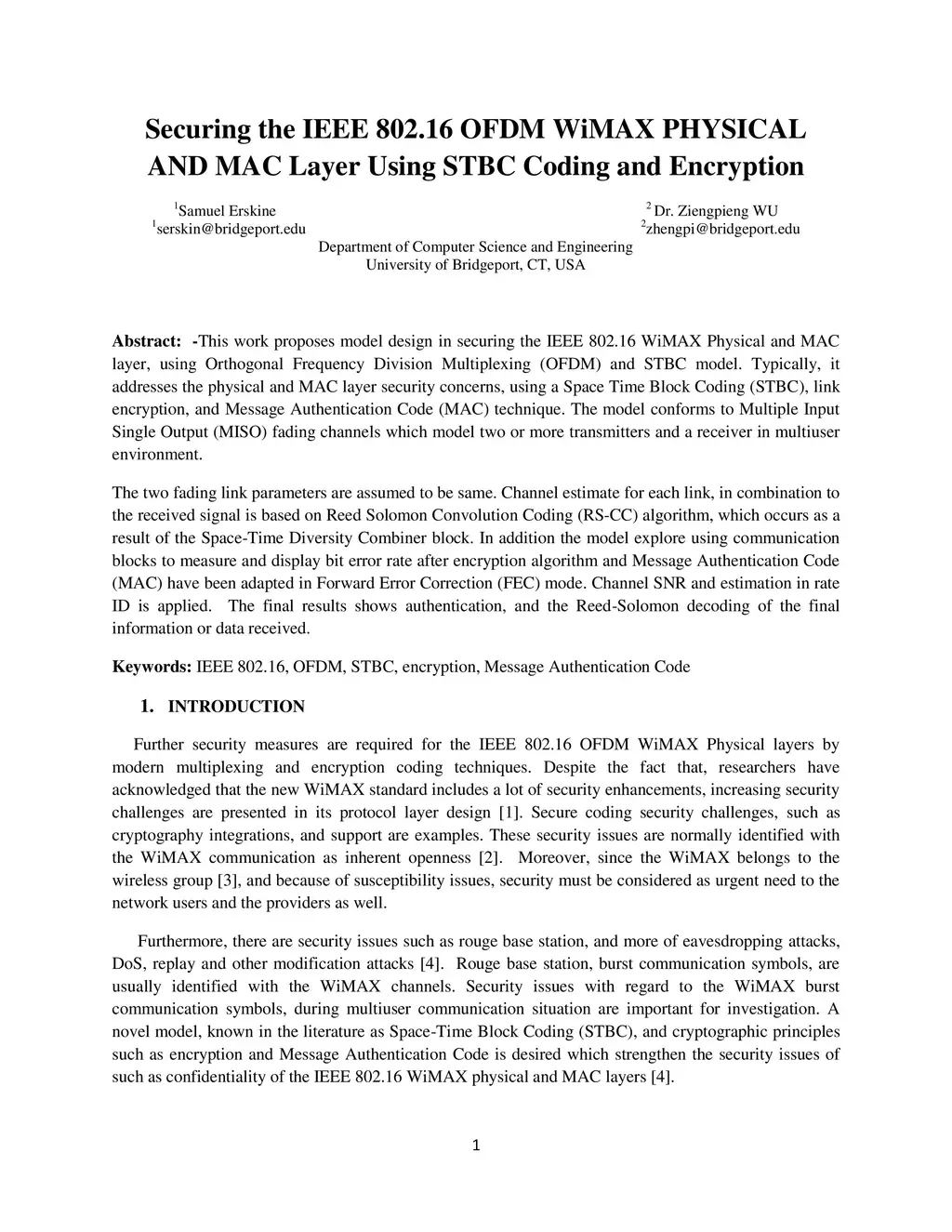 Securing the IEEE 802.16 OFDM WiMAX PHYSICAL AND MAC Layer Using STBC