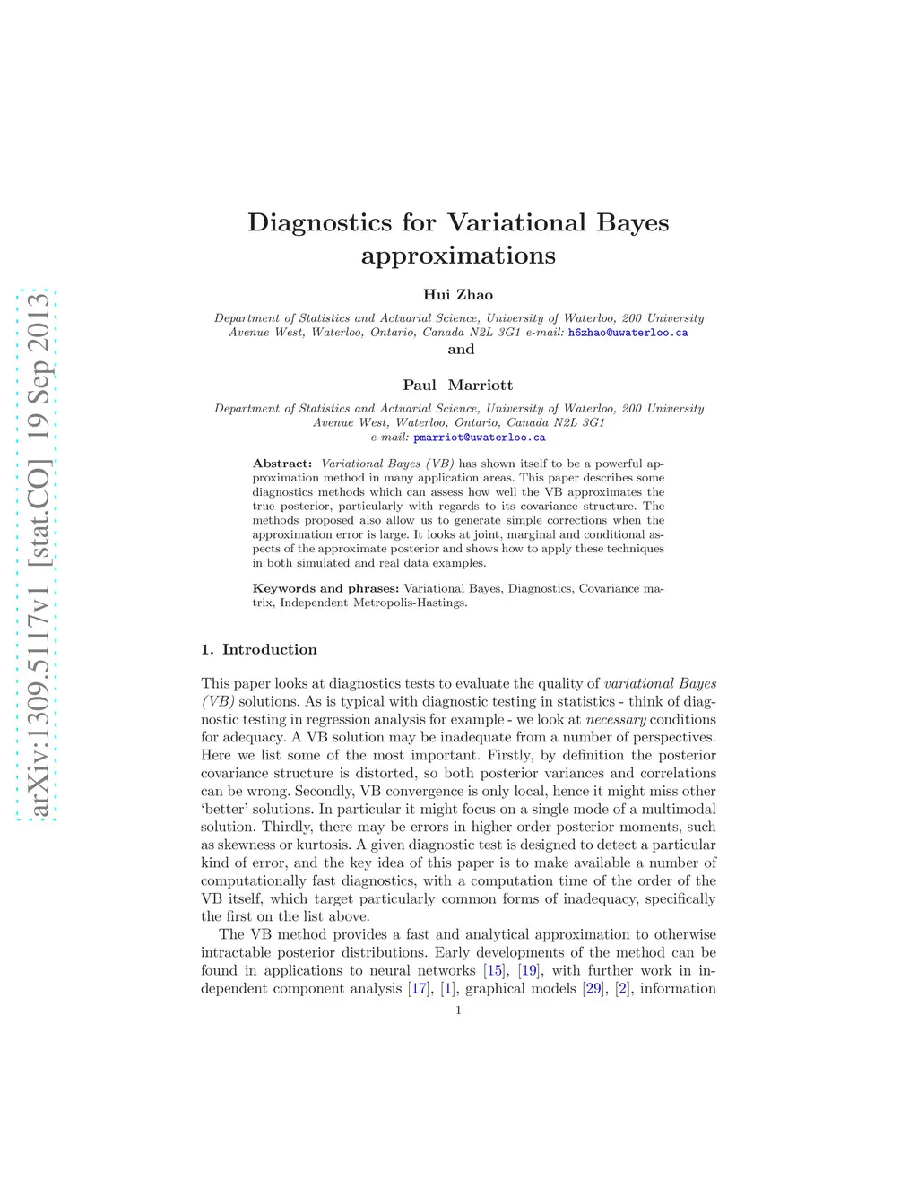 Variational Bayes (VB) has shown itself to be a powerful approximation method in many application areas. This paper describes some diagnostics methods which can assess how well the VB approximates the true posterior, particularly with regards to its covariance structure. The methods proposed also allow us to generate simple corrections when the approximation error is large. It looks at joint, marginal and conditional aspects of the approximate posterior and shows how to apply these techniques in both simulated and real data examples.