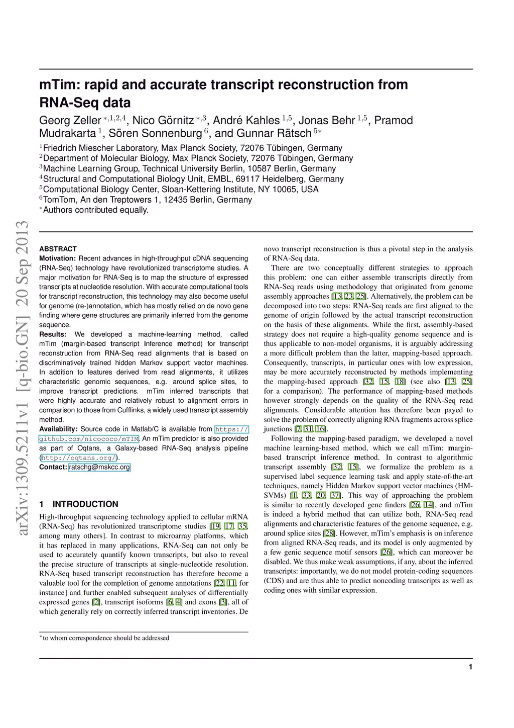 mTim: Rapid and accurate transcript reconstruction from RNA-Seq data