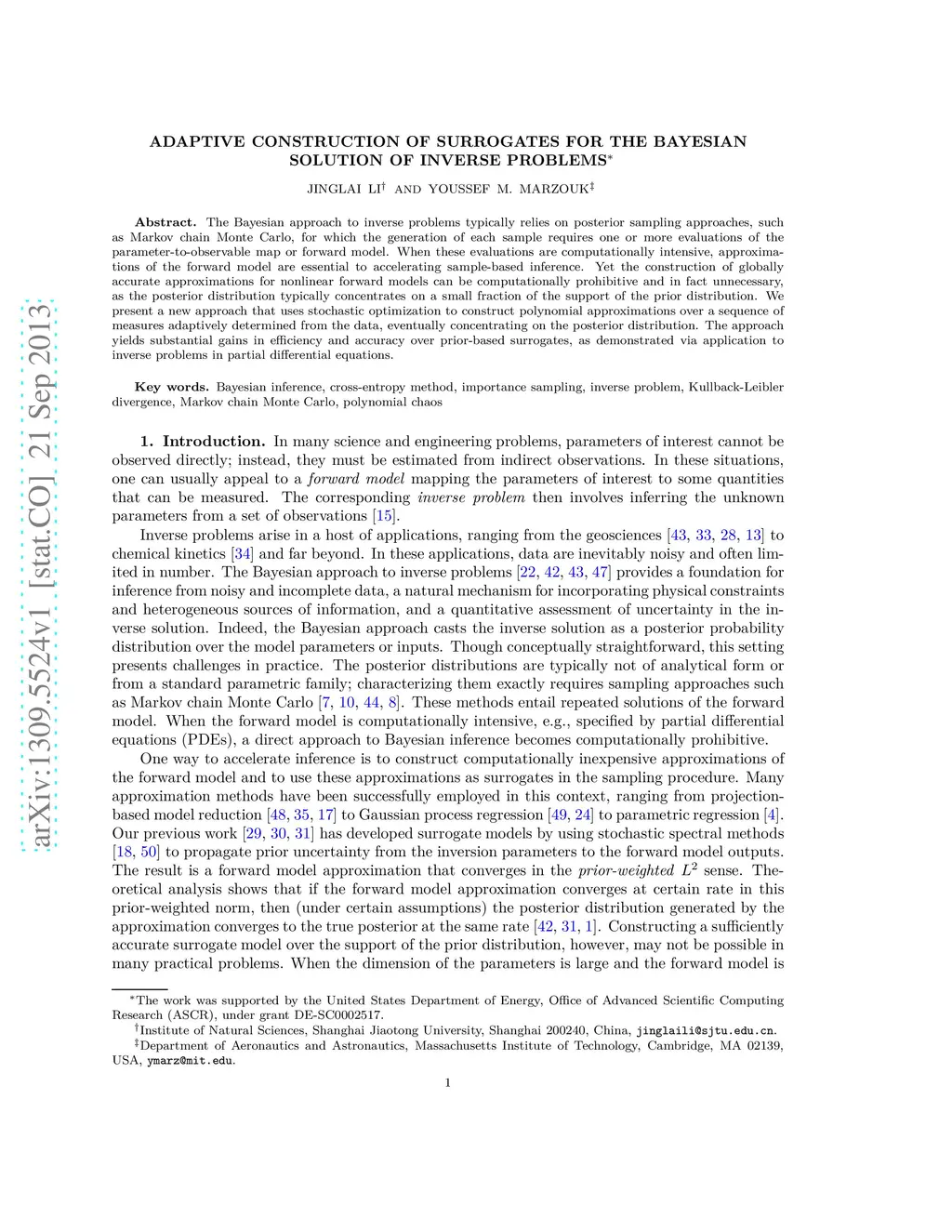 Adaptive construction of surrogates for the Bayesian solution of inverse