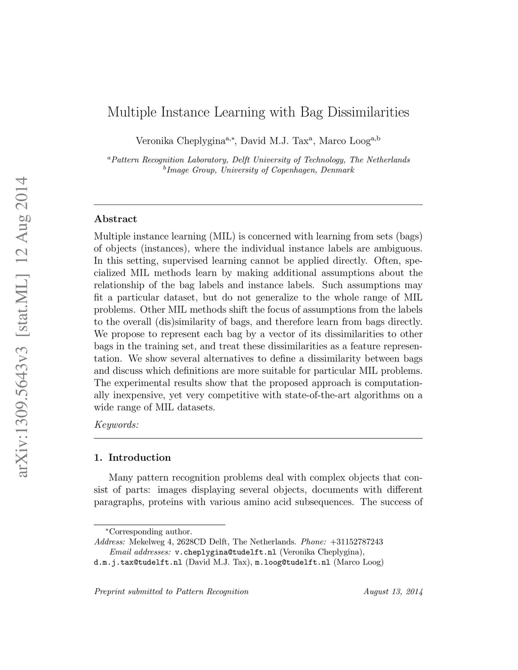 Multiple Instance Learning with Bag Dissimilarities
