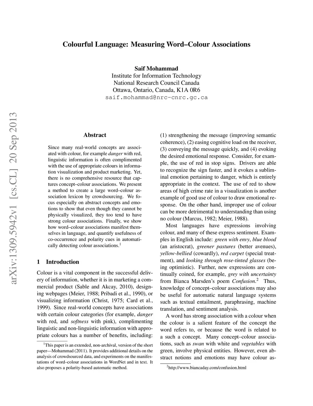 Since many real-world concepts are associated with colour, for example danger with red, linguistic information is often complimented with the use of appropriate colours in information visualization and product marketing. Yet, there is no comprehensive resource that captures concept-colour associations. We present a method to create a large word-colour association lexicon by crowdsourcing. We focus especially on abstract concepts and emotions to show that even though they cannot be physically visualized, they too tend to have strong colour associations. Finally, we show how word-colour associations manifest themselves in language, and quantify usefulness of co-occurrence and polarity cues in automatically detecting colour associations.