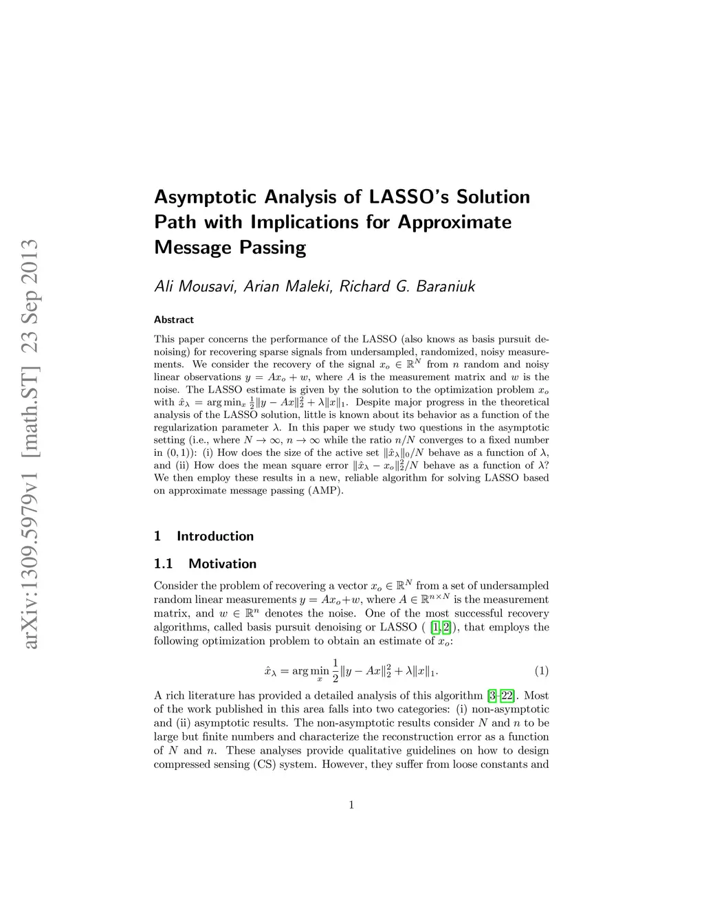 This paper concerns the performance of the LASSO (also knows as basis pursuit denoising) for recovering sparse signals from undersampled, randomized, noisy measurements. We consider the recovery of the signal from random and noisy linear observations , where is the measurement matrix and is the noise. The LASSO estimate is given by the solution to the optimization problem with . Despite major progress in the theoretical analysis of the LASSO solution, little is known about its behavior as a function of the regularization parameter . In this paper we study two questions in the asymptotic setting (i.e., where , while the ratio converges to a fixed number in ): (i) How does the size of the active set behave as a function of , and (ii) How does the mean square error behave as a function of ? We then employ these results in a new, reliable algorithm for solving LASSO based on approximate message passing (AMP).