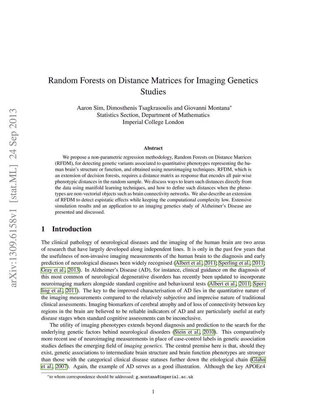 Random Forests on Distance Matrices for Imaging Genetics Studies