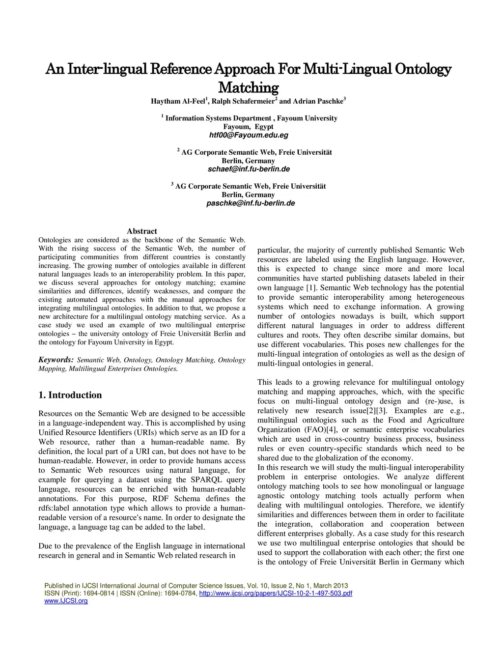 An Inter-lingual Reference Approach For Multi-Lingual Ontology Matching