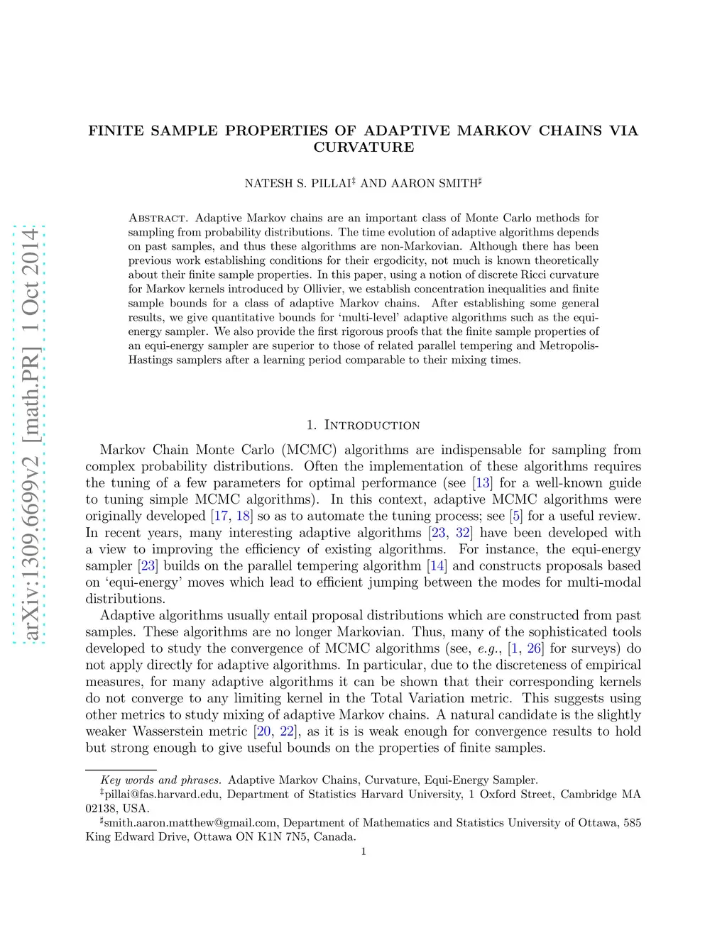 Finite Sample Properties of Adaptive Markov Chains via Curvature