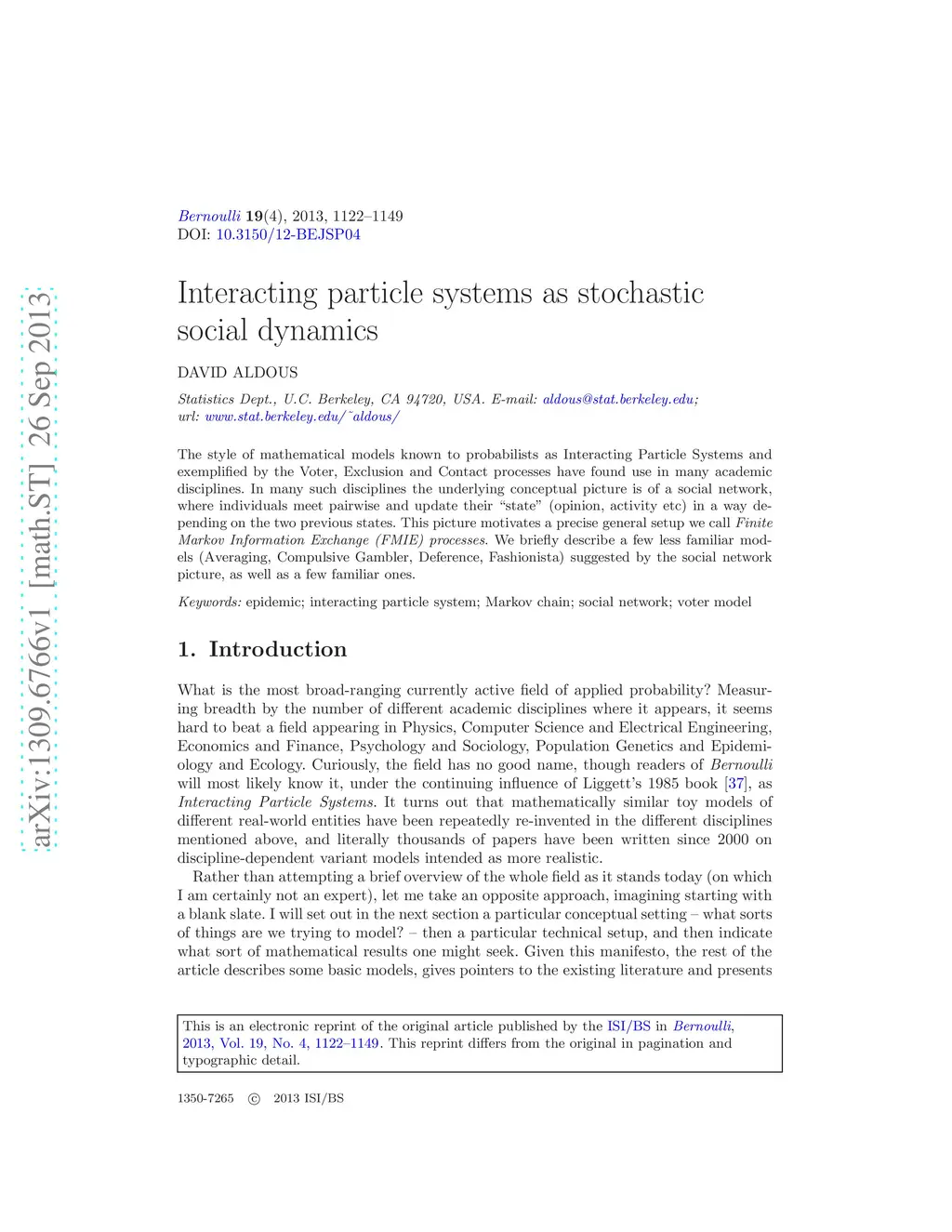 Interacting particle systems as stochastic social dynamics
