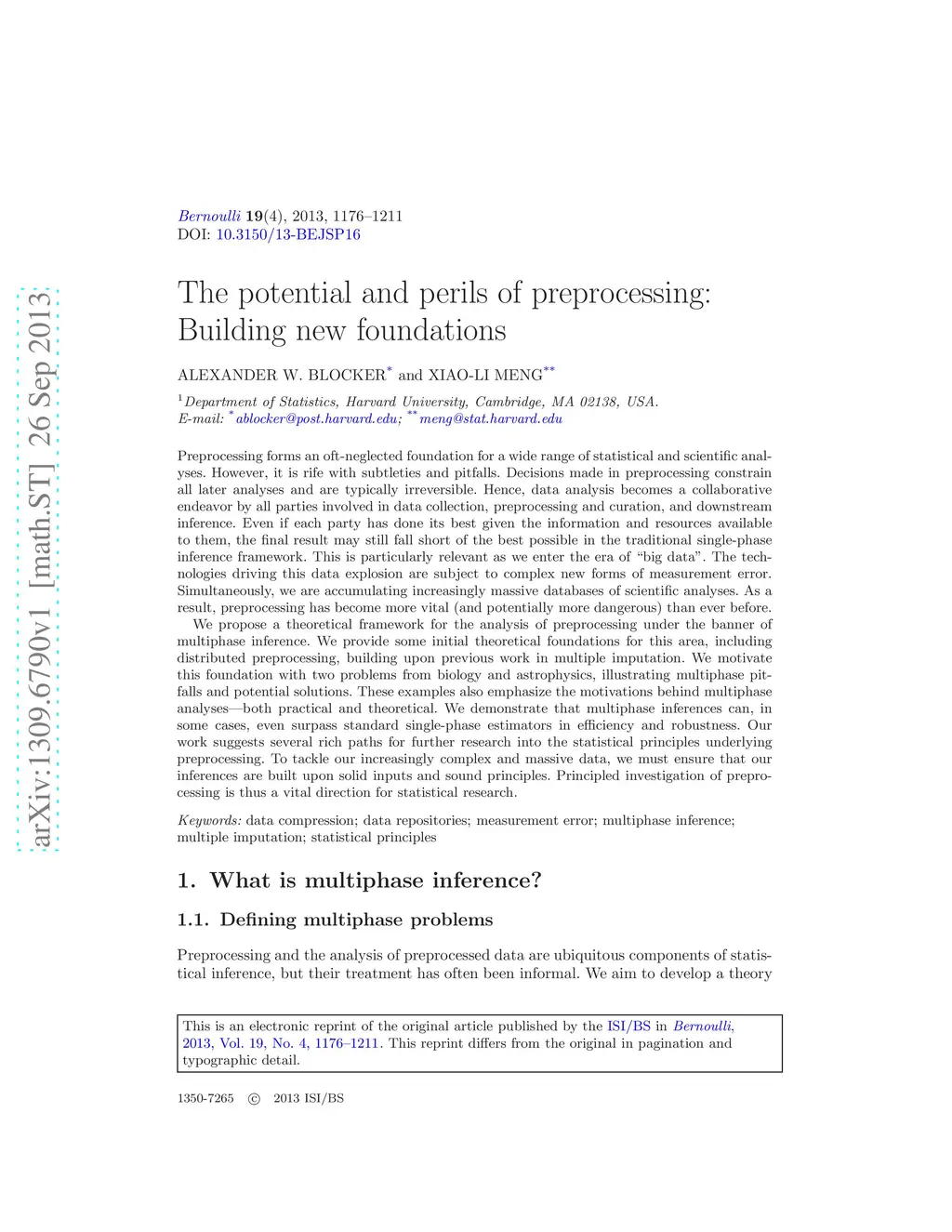 Preprocessing forms an oft-neglected foundation for a wide range of statistical and scientific analyses. However, it is rife with subtleties and pitfalls. Decisions made in preprocessing constrain all later analyses and are typically irreversible. Hence, data analysis becomes a collaborative endeavor by all parties involved in data collection, preprocessing and curation, and downstream inference. Even if each party has done its best given the information and resources available to them, the final result may still fall short of the best possible in the traditional single-phase inference framework. This is particularly relevant as we enter the era of "big data". The technologies driving this data explosion are subject to complex new forms of measurement error. Simultaneously, we are accumulating increasingly massive databases of scientific analyses. As a result, preprocessing has become more vital (and potentially more dangerous) than ever before.