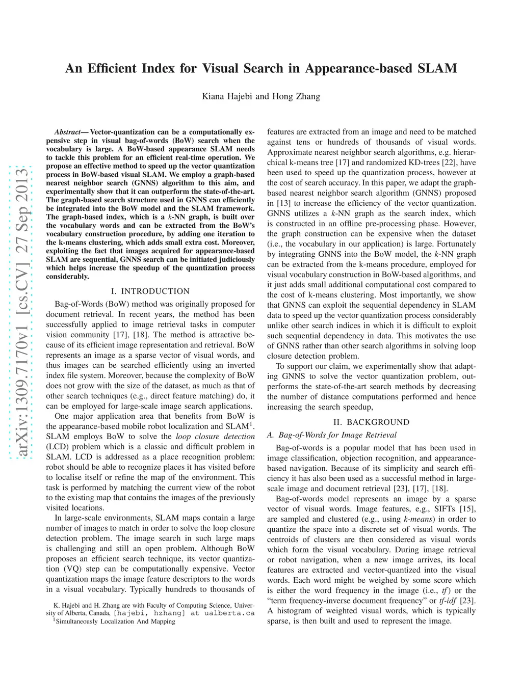 An Efficient Index for Visual Search in Appearance-based SLAM