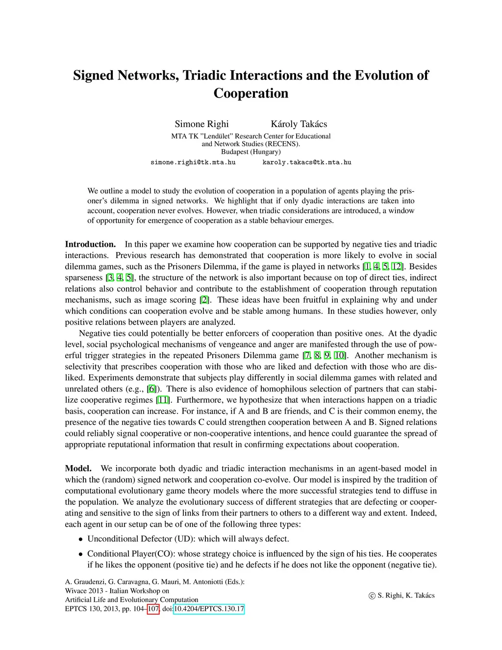 Italian Workshop on Artificial Life and Evolutionary Computation (IWALeC), 2013