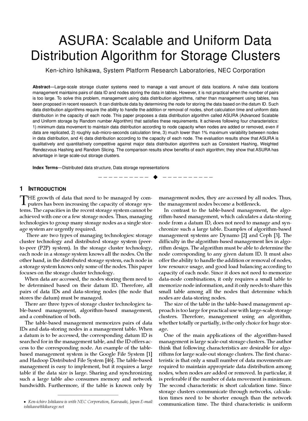 ASURA: Scalable and Uniform Data Distribution Algorithm for Storage