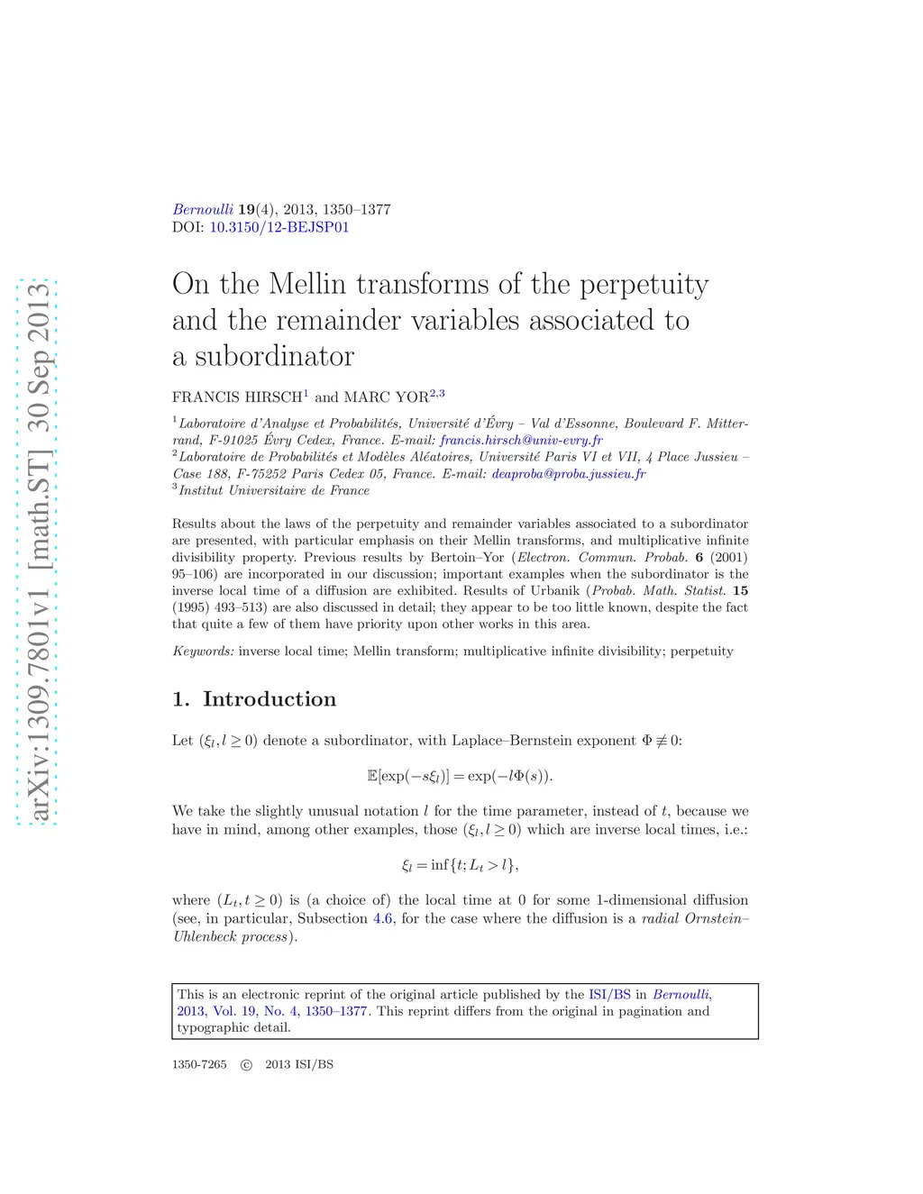 associated to a subordinator