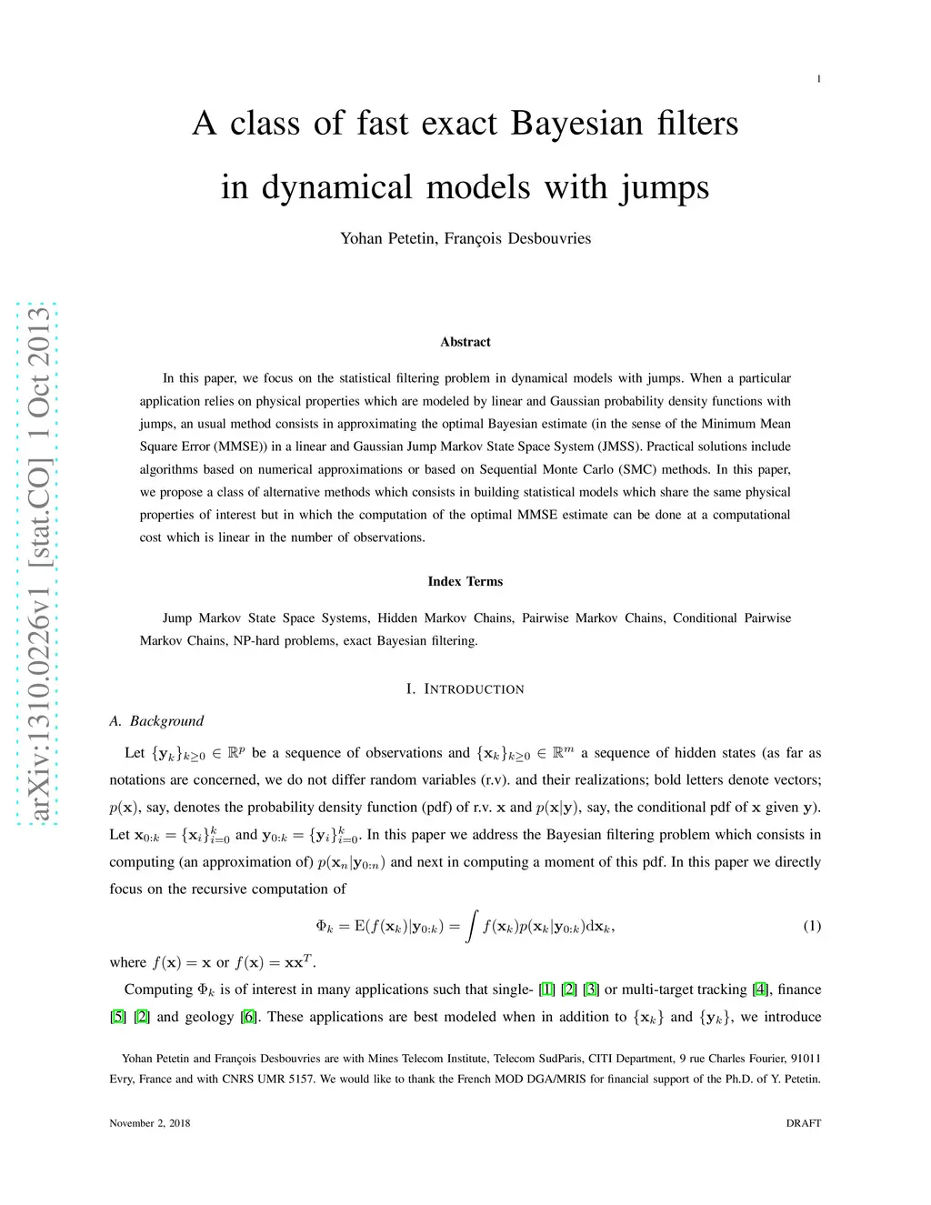 A class of fast exact Bayesian filters in dynamical models with jumps