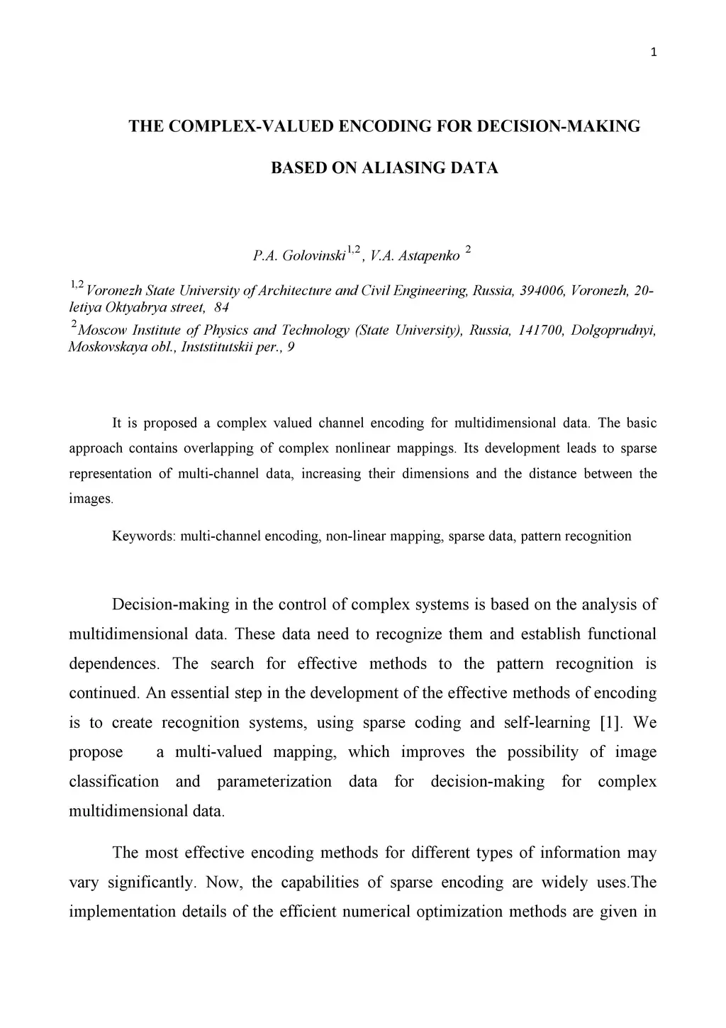 The complex-valued encoding for dicision-making based on aliasing data