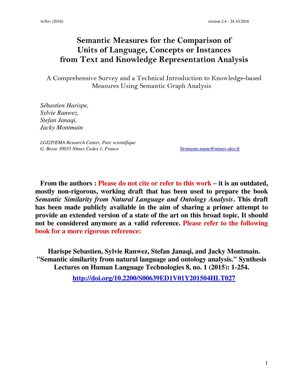 Semantic Measures for the Comparison of Units of Language, Concepts or