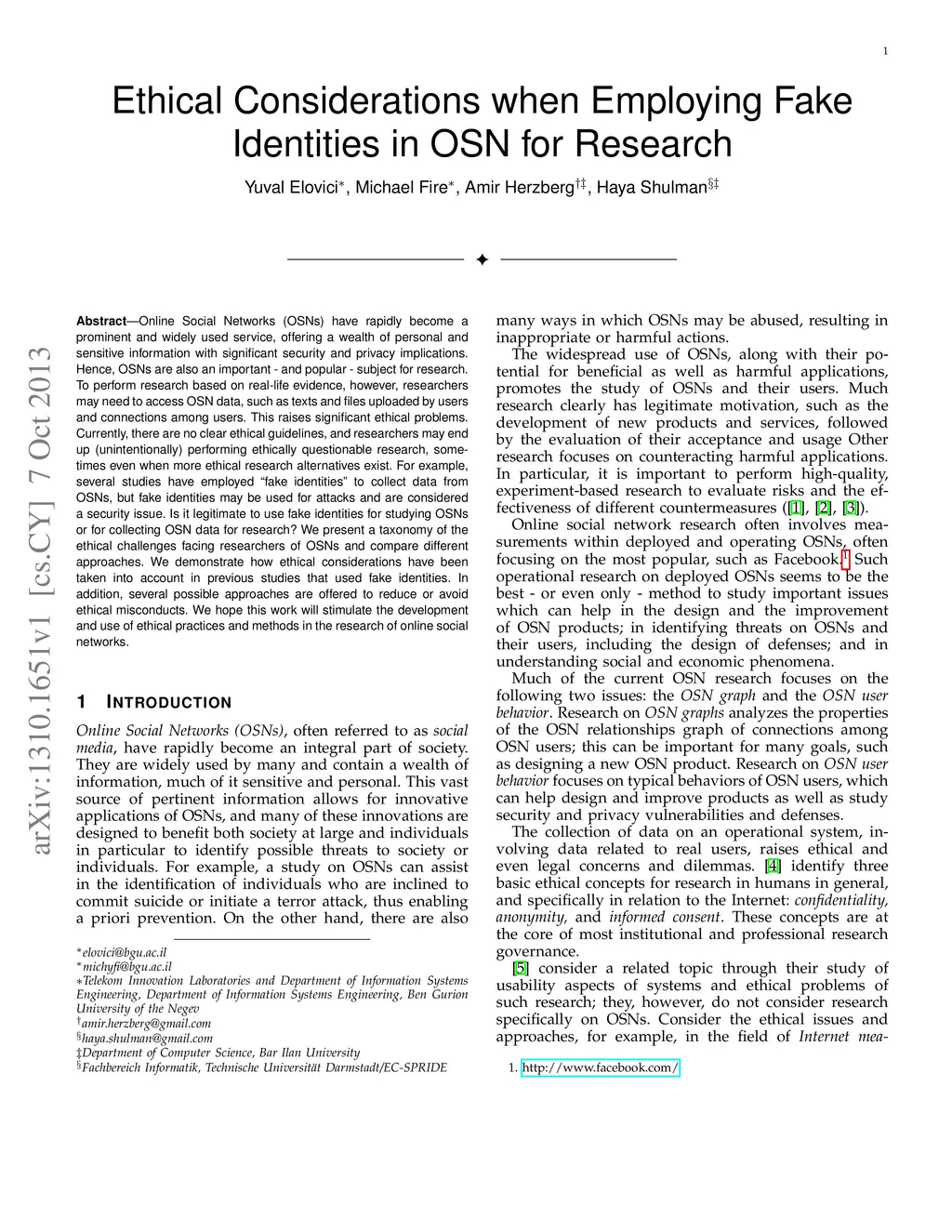 Online Social Networks (OSNs) have rapidly become a prominent and widely used service, offering a wealth of personal and sensitive information with significant security and privacy implications. Hence, OSNs are also an important - and popular - subject for research. To perform research based on real-life evidence, however, researchers may need to access OSN data, such as texts and files uploaded by users and connections among users. This raises significant ethical problems. Currently, there are no clear ethical guidelines, and researchers may end up (unintentionally) performing ethically questionable research, sometimes even when more ethical research alternatives exist. For example, several studies have employed `fake identities` to collect data from OSNs, but fake identities may be used for attacks and are considered a security issue. Is it legitimate to use fake identities for studying OSNs or for collecting OSN data for research? We present a taxonomy of the ethical challenges facing researchers of OSNs and compare different approaches. We demonstrate how ethical considerations have been taken into account in previous studies that used fake identities. In addition, several possible approaches are offered to reduce or avoid ethical misconducts. We hope this work will stimulate the development and use of ethical practices and methods in the research of online social networks.
