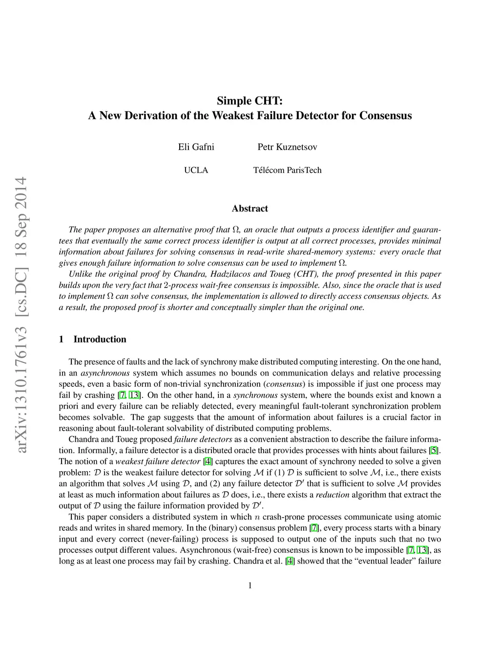 The paper proposes an alternative proof that Omega, an oracle that outputs a process identifier and guarantees that eventually the same correct process identifier is output at all correct processes, provides minimal information about failures for solving consensus in read-write shared-memory systems: every oracle that gives enough failure information to solve consensus can be used to implement Omega. Unlike the original proof by Chandra, Hadzilacos and Toueg (CHT), the proof presented in this paper builds upon the very fact that 2-process wait-free consensus is impossible. Also, since the oracle that is used to implement can solve consensus, the implementation is allowed to directly access consensus objects. As a result, the proposed proof is shorter and conceptually simpler than the original one.