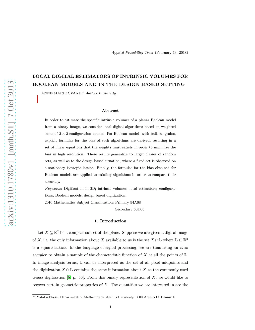Advances in Applied Probability (AAP), 2013