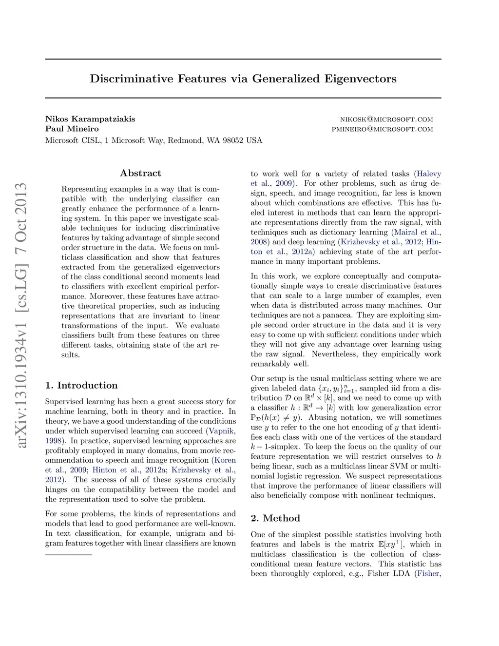 Discriminative Features via Generalized Eigenvectors