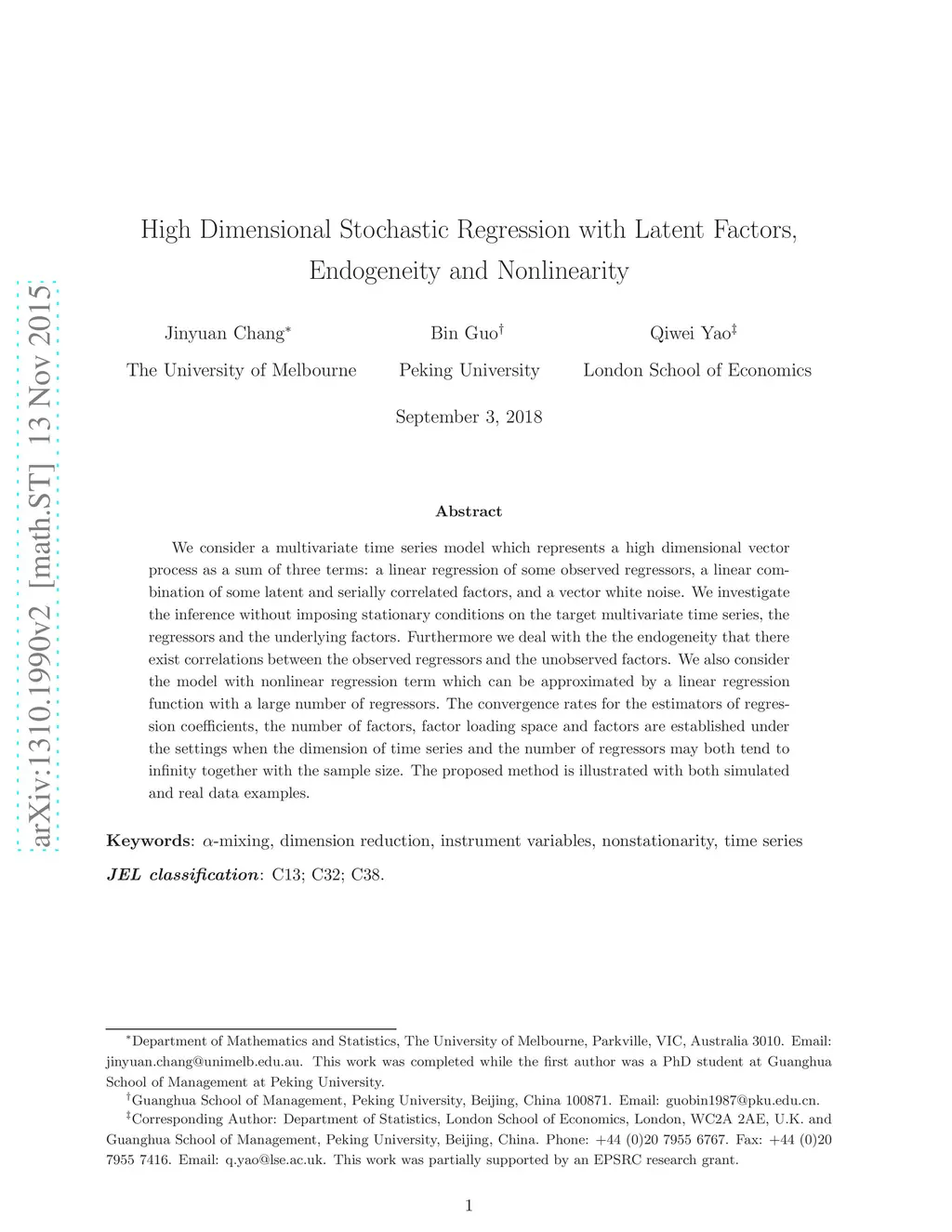 We consider a multivariate time series model which represents a high dimensional vector process as a sum of three terms: a linear regression of some observed regressors, a linear combination of some latent and serially correlated factors, and a vector white noise. We investigate the inference without imposing stationary conditions on the target multivariate time series, the regressors and the underlying factors. Furthermore we deal with the endogeneity that there exist correlations between the observed regressors and the unobserved factors. We also consider the model with nonlinear regression term which can be approximated by a linear regression function with a large number of regressors. The convergence rates for the estimators of regression coefficients, the number of factors, factor loading space and factors are established under the settings when the dimension of time series and the number of regressors may both tend to infinity together with the sample size. The proposed method is illustrated with both simulated and real data examples.