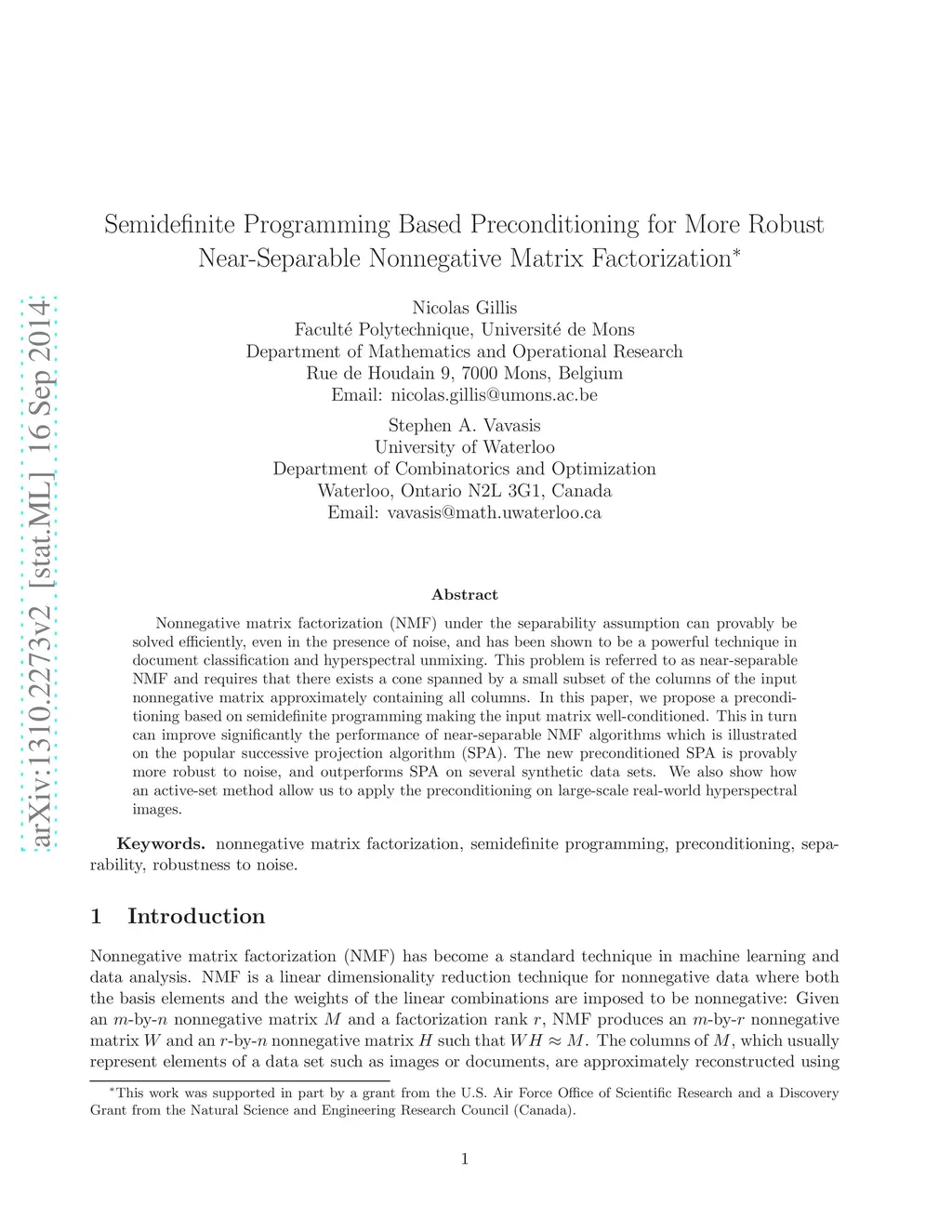 Near-Separable Nonnegative Matrix Factorization