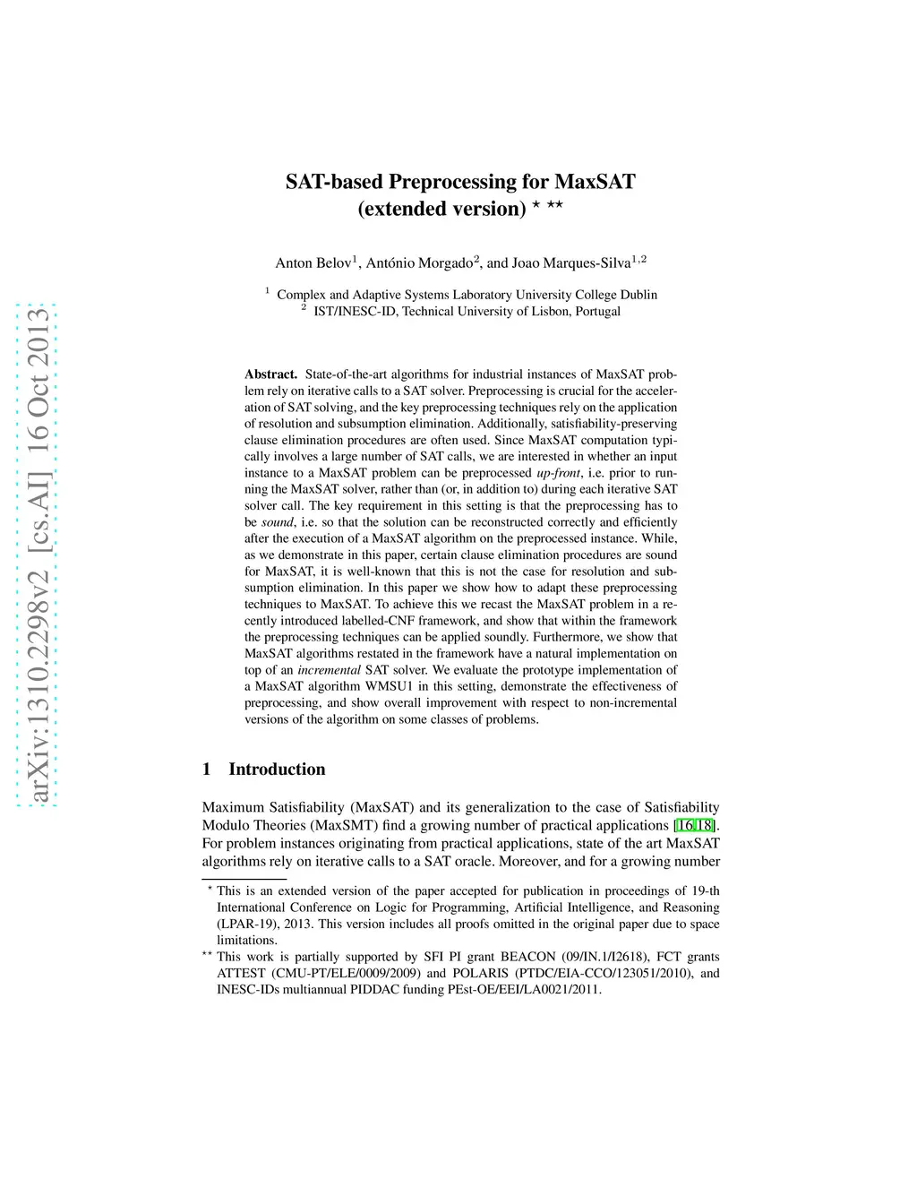 State-of-the-art algorithms for industrial instances of MaxSAT problem rely on iterative calls to a SAT solver. Preprocessing is crucial for the acceleration of SAT solving, and the key preprocessing techniques rely on the application of resolution and subsumption elimination. Additionally, satisfiability-preserving clause elimination procedures are often used. Since MaxSAT computation typically involves a large number of SAT calls, we are interested in whether an input instance to a MaxSAT problem can be preprocessed up-front, i.e. prior to running the MaxSAT solver, rather than (or, in addition to) during each iterative SAT solver call. The key requirement in this setting is that the preprocessing has to be sound, i.e. so that the solution can be reconstructed correctly and efficiently after the execution of a MaxSAT algorithm on the preprocessed instance. While, as we demonstrate in this paper, certain clause elimination procedures are sound for MaxSAT, it is well-known that this is not the case for resolution and subsumption elimination. In this paper we show how to adapt these preprocessing techniques to MaxSAT. To achieve this we recast the MaxSAT problem in a recently introduced labelled-CNF framework, and show that within the framework the preprocessing techniques can be applied soundly. Furthermore, we show that MaxSAT algorithms restated in the framework have a natural implementation on top of an incremental SAT solver. We evaluate the prototype implementation of a MaxSAT algorithm WMSU1 in this setting, demonstrate the effectiveness of preprocessing, and show overall improvement with respect to non-incremental versions of the algorithm on some classes of problems.
