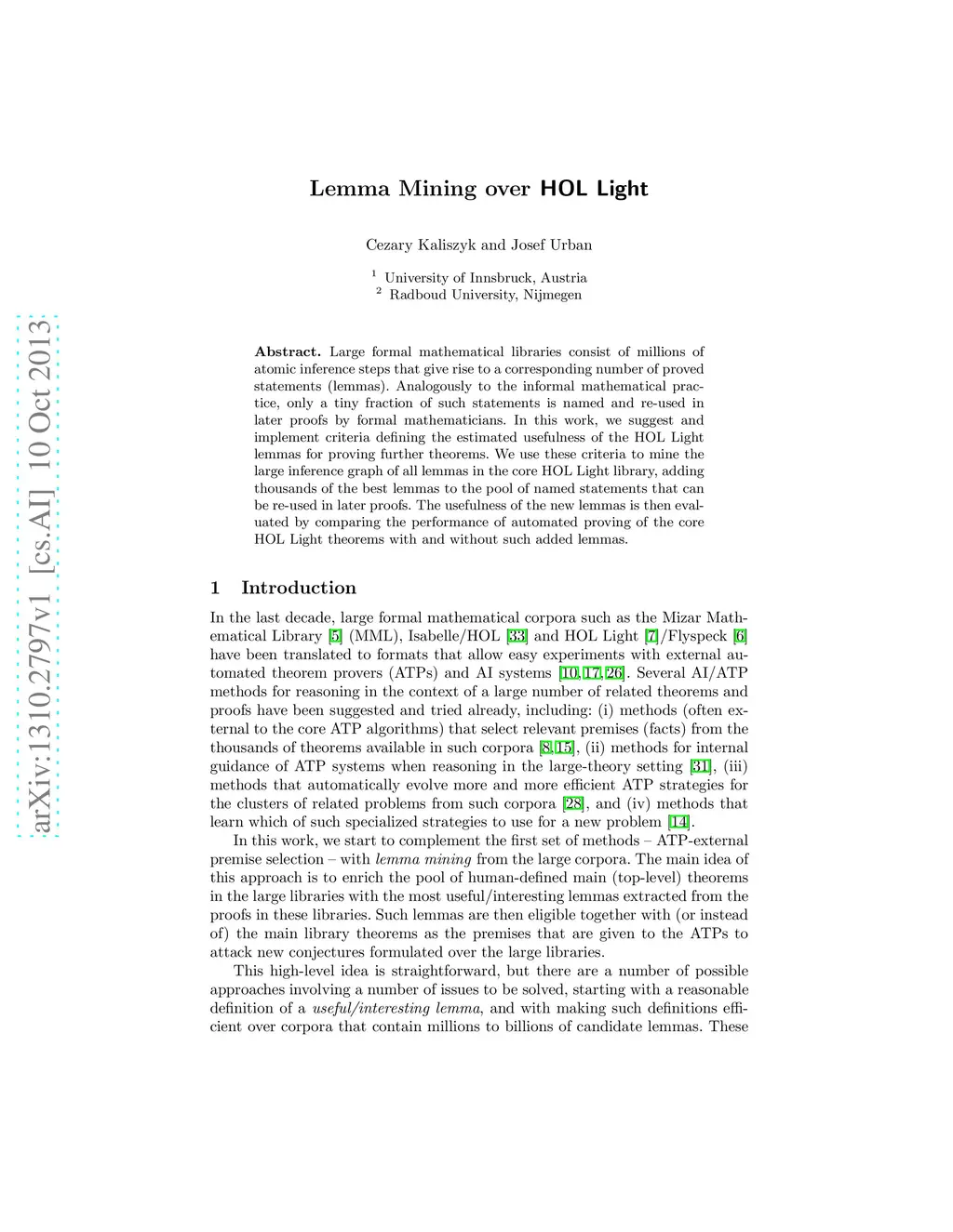 Large formal mathematical libraries consist of millions of atomic inference steps that give rise to a corresponding number of proved statements (lemmas). Analogously to the informal mathematical practice, only a tiny fraction of such statements is named and re-used in later proofs by formal mathematicians. In this work, we suggest and implement criteria defining the estimated usefulness of the HOL Light lemmas for proving further theorems. We use these criteria to mine the large inference graph of all lemmas in the core HOL Light library, adding thousands of the best lemmas to the pool of named statements that can be re-used in later proofs. The usefulness of the new lemmas is then evaluated by comparing the performance of automated proving of the core HOL Light theorems with and without such added lemmas.