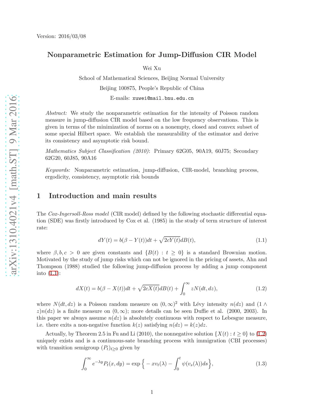 Nonparametric Estimation for Jump-Diffusion CIR Model